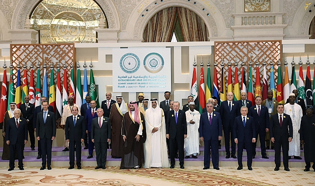 (ANKARA) - Cumhurbaşkanı Recep Tayyip Erdoğan, Suudi Arabistan’ın başkenti Riyad’ta düzenlenen İslam İşbirliği Teşkilatı ve Arap Ligi Olağanüstü Ortak Zirvesi’nde Suriye Devlet Başkanı Beşar Esad ile aynı fotoğrafta yer aldı.İslam İşbirliği Teşkilatı ve Arap Ligi Olağanüstü Ortak Zirve Toplantısı'na katılmak için Riyad'da bulunan Cumhurbaşkanı Recep Tayyip Erdoğan ve Suriye Devlet Başkanı Beşar Esad aynı fotoğraf karesine girdi. Cumhurbaşkanı Erdoğan, Riyad'daki İslam Ülkeleri Zirvesi'nde Esad'ın konuşmasına başlamasının ardından salondan ayrıldı.