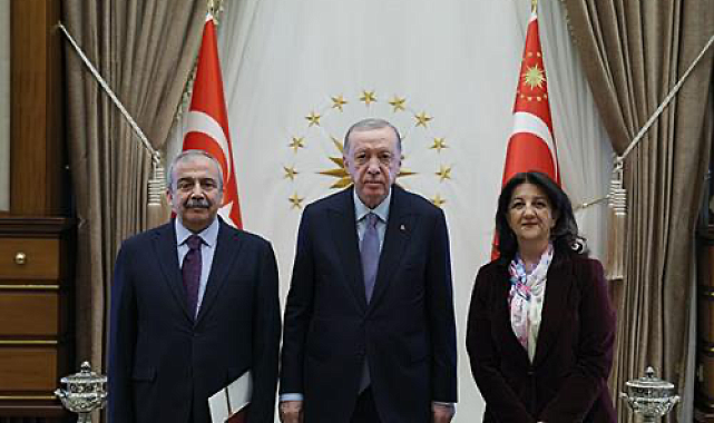(ANKARA) - DEM Parti İmralı Heyeti, Cumhurbaşkanı Recep Tayyip Erdoğan ile yaptıkları görüşmeye ilişkin yazılı açıklama yaptı. Açıklamada, ''Cumhurbaşkanı Sayın Erdoğan ve heyetiyle yaptığımız görüşme, son derece olumlu, yapıcı, verimli ve geleceğe dair umut verici bir atmosferde gerçekleşti. Süreçte gelinen noktanın önemi teyit edildi ve karşılıklı olarak bundan sonraki aşamalar değerlendirildi. Şiddet ve çatışmanın olmadığı, demokratik ve siyasal alanın güçleneceği bir dönemin ülkemiz, yurttaşlarımız ve bölgemiz için hayati önemde olduğu ifade edildi” denildi.DEM Parti İmralı Heyeti, Cumhurbaşkanı Recep Tayyip Erdoğan’la Cumhurbaşkanlığında yaptığı görüşme sonrasında yazılı açıklama yaptı. Açıklamada, şöyle denildi:''Cumhurbaşkanı Sayın Recep Tayyip Erdoğan ve heyetiyle yaptığımız görüşme, son derece olumlu, yapıcı, verimli ve geleceğe dair umut verici bir atmosferde gerçekleşti.Süreçte gelinen noktanın önemi teyit edildi ve karşılıklı olarak bundan sonraki aşamalar değerlendirildi. Şiddet ve çatışmanın olmadığı, demokratik ve siyasal alanın güçleneceği bir dönemin ülkemiz, yurttaşlarımız ve bölgemiz için hayati önemde olduğu ifade edildi. Heyetimiz ve partimiz önümüzdeki süreçte daha da güçlü bir irade ve özenle Barış ve Demokratik Toplum Çağrısı’nı hayata geçirmek için çalışmalarına devam edecektir.Bugün gelinen nokta itibarıyla, dünden daha umutlu olduğumuzu bütün ülkemizin bilgisine sunmakta onur duyuyoruz. Bugüne kadar sürece gerek önerileriyle gerek uyarılarıyla gerekse de eleştiriyle güç katan bütün siyasal partilere ve toplumsal kesimlere şükranlarımızı bildiriyoruz.''