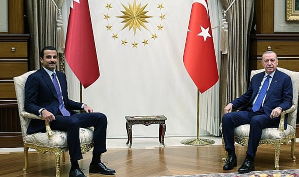 (ANKARA) - Cumhurbaşkanı Recep Tayyip Erdoğan, Katar Emiri Şeyh Temim bin Hamed Al Sani ile Cumhurbaşkanlığı Külliyesinde bir araya geldi.Cumhurbaşkanı Recep Tayyip Erdoğan, Türkiye’ye ziyarette bulunan Katar Emiri Şeyh Temim bin Hamed Al Sani ile Cumhurbaşkanlığı Külliyesinde görüştü.