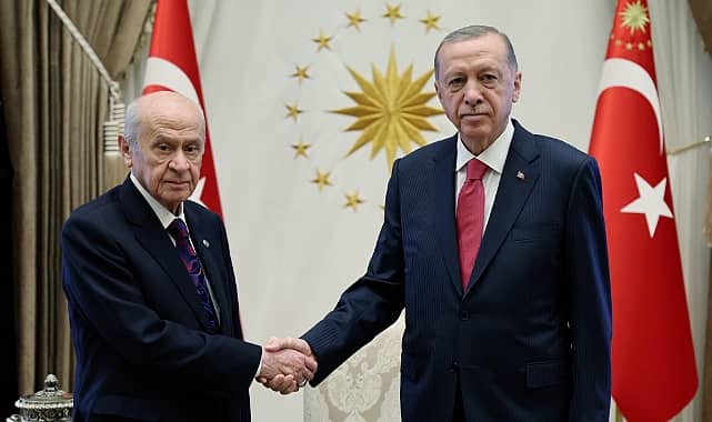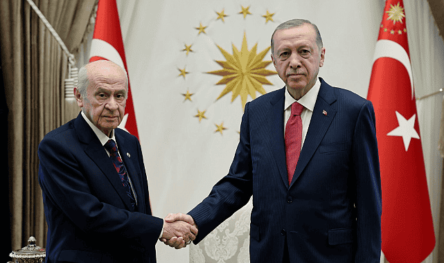 Cumhurbaşkanı Recep Tayyip Erdoğan, MHP Genel Başkanı Devlet Bahçeli ile Cumhurbaşkanlığı’nda bir araya geldi.Cumhurbaşkanı Recep Tayyip Erdoğan, bugün MHP Genel Başkanı Devlet Bahçeli ile Cumhurbaşkanlığı’nda bir araya geldi. Cumhurbaşkanlığı’nın Twitter hesabından yapılan paylaşımda, “Cumhurbaşkanımız Recep Tayyip Erdoğan, Milliyetçi Hareket Partisi (MHP) Genel Başkanı Devlet Bahçeli’yi Cumhurbaşkanlığı Külliyesinde kabul etti” denildi.
