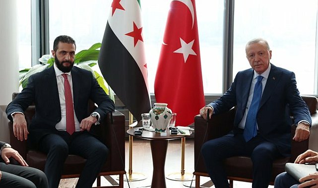 (ANKARA)- Cumhurbaşkanı Recep Tayyip Erdoğan, New York’ta Suriye Cumhurbaşkanı Ahmed Şara ile görüştü.Cumhurbaşkanlığı’nın sosyal medya hesabından yapılan açıklamada, "Cumhurbaşkanımız Recep Tayyip Erdoğan, Birleşmiş Milletler (BM) 80. Genel Kurulu vesilesiyle bulunduğu New York’taki Türkevi’nde Suriye Cumhurbaşkanı Ahmed Şara ile görüştü" denildi.