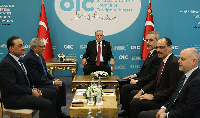 (İSTANBUL) – Cumhurbaşkanı Recep Tayyip Erdoğan, İstanbul’da düzenlenen İslam İşbirliği Teşkilatı (İİT) Dışişleri Bakanları Konseyi Toplantısı kapsamında Türkiye’yi ziyaret eden Pakistan Dışişleri Bakanı Muhammet İshak Dar ve Pakistan Kara Kuvvetleri Komutanı Asim Munir’i kabul etti.