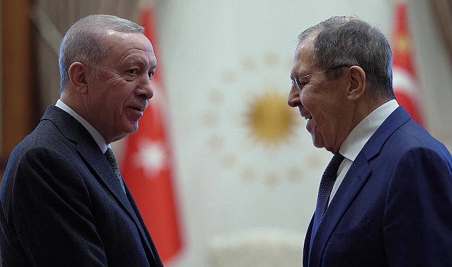 (ANKARA) - Cumhurbaşkanı Recep Tayyip Erdoğan, Rusya Dışişleri Bakanı Sergey Lavrov'u Cumhurbaşkanlığı'nda kabul etti. Cumhurbaşkanlığı'nın resmi internet sitesinden yapılan açıklamada, "Cumhurbaşkanı Recep Tayyip Erdoğan, Rusya Federasyonu Dışişleri Bakanı Sergey Lavrov’u Cumhurbaşkanlığı Külliyesi'nde kabul etti. Kabulde, Dışişleri Bakanı Hakan Fidan da yer aldı" denildi.