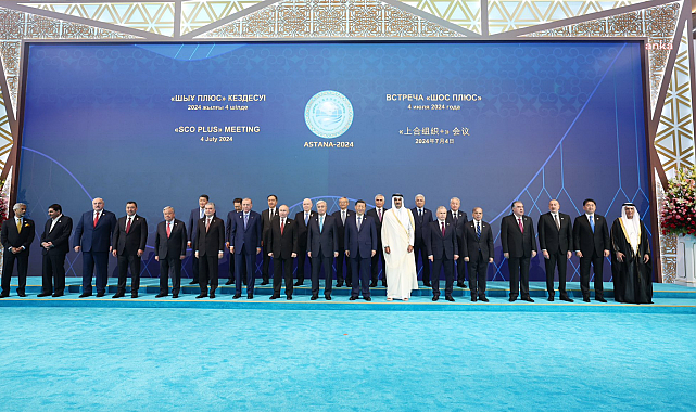 (ANKARA) - Cumhurbaşkanı Recep Tayyip Erdoğan, Astana'daki Şanghay İşbirliği Örgütü 24'üncü Devlet Başkanları Zirvesi'ne katıldı. Zirve öncesi çekilen aile fotoğrafında Cumhurbaşkanı Erdoğan ve Rusya Devlet Başkanı Vladimir Putin yan yana durdu.Cumhurbaşkanı Recep Tayyip Erdoğan, Kazakistan'ın başkenti Astana'da Şanghay İşbirliği Örgütü 24'üncü Devlet Başkanları Zirvesi'ne katıldı.Kazakistan Cumhurbaşkanı Kasım Cömert Tokayev'in ev sahipliğinde, "ŞİÖ +" formatında Bağımsızlık Sarayı'nda düzenlenen zirve öncesinde liderler aile fotoğrafı için bir araya geldi. Erdoğan, fotoğrafta Rusya Devlet Başkanı Vladimir Putin ve Türkmenistan Milli Lideri ve Halk Maslahatı Başkanı Gurbanguli Berdimuhammedov ile yan yana yer aldı.Cumhurbaşkanı Erdoğan, Bağımsızlık Sarayı'na gelişinde Kazakistan Cumhurbaşkanı Tokayev tarafından karşılandı. Burada çekilen aile fotoğrafında, Cumhurbaşkanı Erdoğan, Rusya Devlet Başkanı Vladimir Putin, Çin Devlet Başkanı Şi Cinping, Kazakistan Cumhurbaşkanı Tokayev, Özbekistan Cumhurbaşkanı Şevket Mirziyoyev, Kırgızistan Cumhurbaşkanı Sadır Caparov, Tacikistan Cumhurbaşkanı İmamali Rahman, İran geçici Cumhurbaşkanı Muhammed Muhbir, Hindistan Dışişleri Bakanı Subrahmanyam Jaishankar, Moğolistan Cumhurbaşkanı Ukhnaagin Khurelsukh, Pakistan Başbakanı Şahbaz Şerif, Belarus Cumhurbaşkanı Aleksandr Lukaşenko, Azerbaycan Cumhurbaşkanı İlham Aliyev, Katar Emiri Şeyh Temim bin Hamed Al Sani, Birleşik Arap Emirlikleri Yüksek Konseyi Üyesi ve Resulhayme Emiri Suud bin Sakar el-Kasimi, Türkmenistan Millî Lideri ve Halk Maslahatı Başkanı Gurbanguli Berdimuhammedov ile Birleşmiş Milletler Genel Sekreteri Antonio Guterres yer aldı.Şanghay İşbirliği Örgütü, 2001 yılında üye ülkeler arasında siyasi, ekonomik ve güvenlik alanında ittifak oluşturma amacıyla kuruldu. Türkiye zirveye 2022 yılında da ''diyalog partneri'' statüsüyle Cumhurbaşkanı düzeyinde katılım göstermişti.Erdoğan ve Putin görüştü: Suriye, görüşmenin gündemindeydiErdoğan ve Putin, bugün çekilen aile fotoğrafından önce dün bir araya geldi. Yaklaşık bir saat süren ikili görüşmenin ardından İletişim Başkanlığı’ndan yapılan açıklamada, görüşmede iki liderin ikili ilişkiler, Ukrayna-Rusya Savaşı, İsrail’in Filistin’e saldırıları, Suriye’deki gerilimde çözüm arayışları ve terörle mücadele konularını ele aldığı bildirildi.İletişim Başkanlığı açıklamasında, Erdoğan’ın Suriye’de çözüm için işbirliğine hazır olduğu mesajı verdiği de belirtildi. Cumhurbaşkanı geçen hafta Suriye ile ilişkilerde yumuşama sinyalleri vermiş, ardından Suriye’nin kuzeyinde Şam hükümeti karşıtı gruplar, Türkiye’ye karşı eylemler gerçekleştirmişti. Erdoğan, Kabine toplantısının ardından bu konuya ilişkin ''Dış politikada da sıkılı yumrukların açılmasında büyük fayda olduğuna inanıyoruz. Bunun için kiminle görüşülmesi gerekiyorsa geçmişte olduğu gibi görüşmekten imtina etmeyiz. Elbette bunu yaparken Türkiye'nin menfaatlerini referans alacak ama bu süreçte bize güvenen, bize sığınan, bizimle ortak hareket eden hiç kimsenin mağdur olmasına da izin vermeyeceğiz'' ifadesini kullanmıştı.