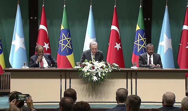 (ANKARA)- Cumhurbaşkanı Recep Tayyip Erdoğan, Cumhurbaşkanlığı’nda Somali Cumhurbaşkanı Hasan Şeyh Mahmud ve Etiyopya Başbakanı Abiy Ahmed ile ortak basın toplantısında; her iki ülkenin katkılarıyla ortak bildiri metninde mutabık kaldıklarını belirterek, Somali ve Etiyopya arasında barış ve işbirliğine dayalı yeni bir başlangıcın ilk adımının atıldığını söyledi. Erdoğan, “Ortak bildirinin önümüzdeki dönemde karşılıklı saygı temelinde bölgede iş birliği, ekonomik kalkınma ve refah için sağlam temel oluşturacağına inanıyorum" dedi.Cumhurbaşkanı Recep Tayyip Erdoğan, Cumhurbaşkanlığı’nda Somali Cumhurbaşkanı Hasan Şeyh Mahmud ve Etiyopya Başbakanı Abiy Ahmed ile ortak basın toplantısı düzenledi. Cumhurbaşkanı Erdoğan, şu açıklamayı yaptı: “Yeni bir başlangıcın ilk adımını atmış olduk”"Somali ve Etiyopya’nın ülkemize duydukları güven neticesinde bundan yaklaşık 8 ay önce başlattığımız, özellikle Ankara sürecinde önemli bir aşamaya geldik. Böylece birtakım kırgınlıkları ve yanlış anlamaları beraberce aşmak suretiyle Somali ve Etiyopya arasında barış ve işbirliğine dayalı yeni bir başlangıcın ilk adımını atmış olduk. Ülkelerin egemenliği, birliği ve toprak bütünlüğünün sağlanmasına yönelik ilkesel tutumumuzun bir sembolü olarak Afrika’nın bu güzide köşesinde barış ve istikrarın sağlanması temel beklentimizdir. Mayıs ayından itibaren tarafların rızasıyla Dışişleri Bakanlarımız iki defa Ankara’da bir kere de Birleşmiş Milletler Genel Kurulu vesilesiyle Türkevi'nde bir araya geldiler. Yüz yüze yapılan bu toplantıların yanı sıra birçok kez de telefon irtibatımız oldu.“Bu tarihi uzlaşıya vardıkları için değerli kardeşlerimi gönülden tebrik ediyor”Tüm bu süreç boyunca tarafların hassasiyetlerini, önceliklerini ve beklentilerini dikkatle dinledik. Her iki ülkenin değerli katkılarıyla da bugün mutabık kaldığımız ortak bildiri metnini ortaya çıkardık. Bu ortak bildiri geçmişe değil, geleceğe odaklanmakta, bizim için çok önem taşıyan bu iki dost ülkenin bundan sonra inşa edecekleri ilkeleri kayda geçirmektedir. Büyük özverilerle bu tarihi uzlaşıya vardıkları için değerli kardeşlerimi gönülden tebrik ediyor, kendilerine yapıcı tutumlarından dolayı teşekkür ediyorum.“Bu uzlaşı devlet adamlarının gelecek nesillere karşı görev ve sorumluluğudur”Somali ve Etiyopya’nın bulunduğu bölge geçmişte birçok haksızlığa uğramasına ve ciddi çatışmalara sahne olmasına rağmen tarihte parlak dönemler yaşamış ve insanlığa önemli katkılar yapmış bir coğrafyadır. Bölge insanı zorlukların üstesinden gelme bilgeliğini hep göstermiştir. Biraz önce mutabık kalınan ortak bildirinin önümüzdeki dönemde karşılıklı saygı temelinde bölgede iş birliği, ekonomik kalkınma ve refah için sağlam temel oluşturacağına inanıyorum. Bu aynı zamanda devlet adamlarının gelecek nesillere karşı görev ve sorumluluğudur. Burada ilan ettiğimiz uzlaşı böylesi bir vizyonun ürünüdür. Bundan sonra atacağımız adımları birlikte kararlaştırıp bölge insanının huzur ve refahını artıracak projeleri beraberce hayata geçireceğiz."Basın toplantısının ardından Cumhurbaşkanlığı İletişim Başkanlığı'nın sosyal medya hesabından "Türkiye Cumhuriyeti’nin kolaylaştırıcılığıyla Etiyopya Federal Demokratik Cumhuriyeti ve Somali Federal Cumhuriyeti’nin Ankara Bildirisi" yayımlandı. Bildiride şu ifadelere yer verildi:"Türkiye Cumhuriyeti Cumhurbaşkanı Sayın Recep Tayyip Erdoğan, Somali Federal Cumhuriyeti Cumhurbaşkanı Sayın Hasan Şeyh Mahmud ve Etiyopya Federal Demokratik Cumhuriyeti Başbakanı Sayın Abiy Ahmed Ali'yi 11 Aralık 2024 tarihinde Ankara'da ağırlamıştır. Dostane bir ortamda gerçekleştirilen toplantı, açık ve yapıcı bir görüşmeye olanak sağlamıştır. Somali ve Etiyopya Liderleri birbirlerinin egemenlik, birlik, bağımsızlık ve toprak bütünlüğünün yanı sıra uluslararası hukuk, Birleşmiş Milletler Şartı ve Afrika Birliği Kurucu Antlaşması'nda yer alan ilkelere saygı ve bağlılıklarını teyit etmişlerdir. Taraflar, dostluk ve karşılıklı saygı ruhu içerisinde, görüş ayrılıkları ve tartışmalı meselelerden vazgeçip geride bırakma ve ortak refah doğrultusunda iş birliği içerisinde kararlılıkla ilerleme konusunda mutabık kalmışlardır. Somali, Etiyopya askerlerinin Afrika Birliği Harekâtlarındaki kayıplarını tanır. Taraflar, Somali Federal Cumhuriyeti'nin toprak bütünlüğüne saygı gösterirken Etiyopya'nın denize ve denizden güvenli erişiminden sağlanabilecek çeşitli potansiyel yararları tasdik etmişlerdir. Ayrıca, Etiyopya Federal Demokratik Cumhuriyeti'nin, Somali Federal Cumhuriyeti'nin egemen yetkisi altında, denize ve denizden güvenilir, emniyetli ve sürdürülebilir erişimden yararlanmasına olanak tanıyacak sözleşme, kiralama ve benzeri yöntemler de dahil olmak üzere ikili anlaşmalar yoluyla karşılıklı olarak avantajlı ticari düzenlemeleri sonuçlandırmak için yakın bir şekilde birlikte çalışma konusunda mutabık kalmışlardır.Taraflar, bu amaçlar doğrultusunda ve Türkiye'nin kolaylaştırıcılığında en geç Şubat 2025 sonuna kadar iyi niyetle teknik müzakerelere başlamaya ve dört ay içinde sonuçlandırıp imzalamaya karar vermişlerdir. Taraflar, bu taahhütlerin uygulanmasında Türkiye'nin desteğini memnuniyetle karşılamış ve söz konusu taahhütlerin yorumlanması ve uygulanmasına ilişkin her türlü görüş ayrılığını diyalog yoluyla ve gerektiğinde Türkiye'nin desteğiyle barışçıl bir şekilde çözme taahhüdünde bulunmuşlardır. Taraflar, Türkiye Cumhurbaşkanı Sayın Recep Tayyip Erdoğan'a bu girişim ve sürece yön