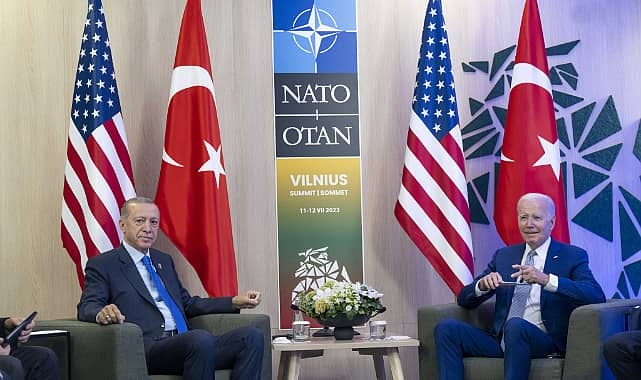 Cumhurbaşkanı Recep Tayyip Erdoğan, Litvanya’nın başkenti Vilnius’ta yapılan NATO Zirvesi kapsamında, ABD Başkanı Joe Biden ile bir araya geldi. Erdoğan, “Stratejik mekanizma kapsamında sıranın artık devlet başkanları düzeyinde istişarelere geldiği kanaatindeyim. Bugün NATO marjında bu görüşmeyi bunun ilk adımı olarak görüyorum. Bundan önceki buluşmalarımız adeta ısınma turları gibiydi. Ama şimdi yeni bir süreci başlatıyoruz. Tabii benim için bu yeni süreç, 5 yıllık bir süreç. Şimdi sizde de seçim hazırlıkları var. Bu seçim hazırlıklarıyla birlikte şimdiden başarılar dileriz” dedi.Cumhurbaşkanı Erdoğan, Vilnius’taki NATO Zirvesi kapsamında bugün ABD Başkanı Joe Biden ile görüştü. Erdoğan, görüşmenin basına açık bölümünde şunları söyledi:“Değerli dostum; görevime yeniden seçilmem nedeniyle aradığınız ve ilettiğiniz tebrik mesajı sebebiyle şahsım ve milletim adına çok teşekkür ediyorum. Stratejik mekanizma kapsamında sıranın artık devlet başkanları düzeyinde istişarelere geldiği kanaatindeyim. Bugün NATO marjında bu görüşmeyi bunun ilk adımı olarak görüyorum. Bundan önceki buluşmalarımız adeta ısınma turları gibiydi. Ama şimdi yeni bir süreci başlatıyoruz. Tabii benim için bu yeni süreç, 5 yıllık bir süreç. Şimdi sizde de seçim hazırlıkları var. Bu seçim hazırlıklarıyla birlikte şimdiden başarılar dileriz.ABD Başkanı Biden ise “Teşekkür ederim. Umarım 5 yıl daha birlikte çalışırız” dedi.