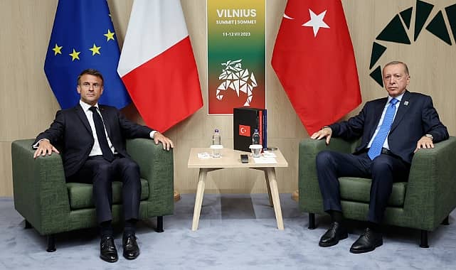 Cumhurbaşkanı Recep Tayyip Erdoğan, Litvanya’nın başkenti Vilnius’ta NATO Zirvesi kapsamında Fransa Cumhurbaşkanı Emmanuel Macron ile görüştü.Cumhurbaşkanı Recep Tayyip Erdoğan, Vilnius’ta Fransa Cumhurbaşkanı Emmanuel Macron ile bugün bir araya geldi. Cumhurbaşkanlığı’nın sosyal medya paylaşımında, “Cumhurbaşkanımız Recep Tayyip Erdoğan, NATO Zirvesi sebebiyle bulunduğu Litvanya’nın başkenti Vilnius’ta Fransa Cumhurbaşkanı Emmanuel Macron ile görüştü” denildi.