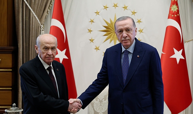 Cumhurbaşkanı Recep Tayyip Erdoğan, MHP Genel Başkanı Devlet Bahçeli ile bugün Cumhurbaşkanlığı'nda bir araya geldi.Cumhurbaşkanı Recep Tayyip Erdoğan, bugün Cumhurbaşkanlığı'nda MHP Genel Başkanı Devlet Bahçeli ile bir araya geldi. Cumhurbaşkanlığı'nın resmi internet sitesinden yapılan açıklamada; "Cumhurbaşkanı Recep Tayyip Erdoğan, Milliyetçi Hareket Partisi (MHP) Genel Başkanı Devlet Bahçeli’yi Cumhurbaşkanlığı Külliyesinde kabul etti" denildi.