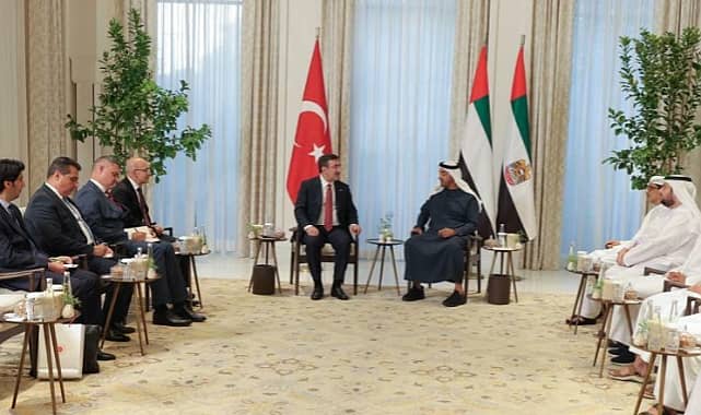 Cumhurbaşkanı Yardımcısı Cevdet Yılmaz ile Hazine ve Maliye Bakanı Mehmet Şimşek, Birleşik Arap Emirlikleri’ne yaptıkları çalışma ziyareti kapsamında, Birleşik Arap Emirlikleri (BAE) Devlet Başkanı Şeyh Muhammed bin Zayed El Nahyan ile bir araya geldi.Cumhurbaşkanı Yardımcısı Cevdet Yılmaz ile Hazine ve Maliye Bakanı Mehmet Şimşek Birleşik Arap Emirlikleri’ne yaptıkları çalışma ziyareti kapsamında, bugün BAE Devlet Başkanı Şeyh Muhammed bin Zayed El Nahyan ile görüştü. Cumhurbaşkanı Yardımcılığından edinilen bilgiye göre; görüşmede, iki ülke arasındaki ilişkiler ve ekonomik iş birliği imkanları değerlendirildi. Görüşmede, BAE Devlet Başkan Yardımcısı Şeyh Mansur Bin Zayed Al Nahyan da yer aldı.