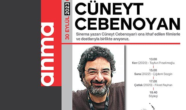 Sinema yazarı ve film eleştirmeni Cüneyt Cebenoyan, 30 Eylül Cumartesi günü Kadıköy Belediyesi’ne bağlı Sinematek/Sinema Evi'nde düzenlenecek programlarla anılacak.Kadıköy Belediyesi Sinematek/Sinema Evi, 2019 yılında geçirdiği trafik kazası sonucu hayatını kaybeden sinema yazarı ve film eleştirmeni Cüneyt Cebenoyan için anma etkinlikleri düzenliyor. Türkiye’nin önemli sinema eleştirmenleri arasında gösterilen Cüneyt Cebenoyan’a ithaf edilen 3 film, 30 Eylül Cumartesi günü Sinematek/Sinema Evi’nde seyirciyle buluşacak. Gösterilecek filmler arasında Tayfun Pirselimoğlu’nun yönettiği polisiyeden korkuya uzanırken yer yer karanlık mizahıyla nefes aldıran tekinsiz bir konunun anlatıldığı “Kerr” filminin yanı sıra Çiğdem Sezgin’in yönettiği özgür bir kadın öyküsü “Suna” ve Fikret Reyhan’ın yönettiği bir borcun yarattığı ahlaki çatışmayı incelikle anlatan “Çatlak” filmi de yer alıyor. Gösterimlerin ardından filmlerin yönetmenleri de Cebenoyan’ın dostlarıyla söyleşi gerçekleştirecek.Ayrıca Cüneyt Cebenoyan’ın 2014-2016 yılları arasında Açık Radyo çatısı altında, her pazartesi 11.00’de farklı bir konukla bir film üzerine sohbet ettiği “Erguvani İstimbot” programının kayıtlarından derlenen aynı adlı kitap, geçtiğimiz günlerde Doğan Kitap etiketiyle yayımlanmıştı. Kitabın gelirleri, Cüneyt Cebenoyan Çocuk ve Sinema Buluşmaları’nda kullanılmak üzere Bütün Çocuklar Bizim Derneği’ne bağışlanacak.30 Eylül 2023 Cumartesi günü Cüneyt Cebenoyan’ı anmak için gerçekleştirilecek ve ücretsiz olarak sinemaseverlerle buluşacak programın detayları şöyle:13.00 | Film Gösterimi: Kerr (2020, Tayfun Pirselimoğlu)