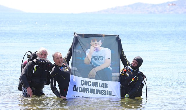 (İSTANBUL) - Mattia Ahmet Minguzzi’nin iki çocuk tarafından öldürülmesine tepki gösteren bir grup dalgıç, 23 Nisan Milli Egemenlik ve Çocuk Bayramı’nda 15 yaşına girecek olan Mattia Ahmet Minguzzi’nin fotoğrafının bulunduğu "Çocuklar Öldürülmesin" yazılı pankartı suyun altında açtı.