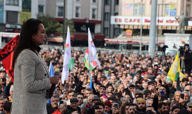 Rojova’ya dönük mesajımızı çok net veriyoruz. Tışrin barajı başta olmak üzere SMO ve benzeri çetelerle oraları bombalamak, orada insanları katletmek, barış nöbeti tutan sanatçılara saldırmak kimsenin kabul edeceği bir şey değildir. Demokratik bir Suriye için demokratik anayasaya ihtiyaç var. Bizler bunun için çalışmalıyız. İstanbul'dan Esenyurt'tan orada mücadele veren bütün Rojavalılara selam gönderiyoruz."Tülay Hatimoğulları, ülkenin ağır bir ekonomik krizden geçtiğini ifade ederek, "Tekstil atölyelerinde merdiven altı yerlerde asgari ücretle çalıştığınız zaman bir ayrım yoktur işçi sınıfı içerisinde. Bu kapitalist sistem halkları ayırmadan sömürüyor. Ama gelin görün ki grev yapacağım dediğinize hemen size bir ‘terörist’ yaftası yapıştırılıyor." dedi. "Barışın toplumsallaşması için bütün siyasi partiler bu sürecin parçası olmalı"Hatimoğulları, DEM Parti heyetlerinin İmralı görüşmelerinin merak edildiğini belirterek, "Öncelikle Sayın Abdullah Öcalan'ın sağlık durumu oldukça iyi ve sizlere selamlarını getirdim. Sayın Öcalan’ın mesajı şöyle; 'Türkiye’yi demokratikleştirdikçe Kürt sorunu barışçıl ve demokratik yöntemle çözülecek' demiştir. Barışın toplumsallaşması için sadece iktidar, sadece DEM Parti değil, Türkiye’deki bütün siyasi partiler, bütün muhalefet partileri, bütün kurumlar, toplumsal dinamikler mutlaka bu sürecin parçası olmalıdır, yürütücüsü olmaldır ki kalıcı bir barışı kalıcı sağlayalım." diye konuştu."Bir yandan barış diyorlar bir yandan kayyum atıyorlar"Halkın ortak iradesiyle seçilmiş Ahmet Özer'in şu an cezaevinde olduğunu ve Esenyurt Belediyesine kayyum atandığını hatırlatan Hatimoğulları, şöyle konuştu:"Bununla kalınmadı, İBB Başkanı hakkında açtıkları davalarla onu mahkeme koridorlarına göndermeye çalıştılar. Bu irade gaspıdır. Bunu asla kabul etmiyoruz. HDP’nin belediyelerine geçmiş dönemde iki kez şimdi de DEM Parti’nin belediyelerine kayyum atıyorlar. Bir yandan barış diyorlar bir yandan kayyum atıyorlar. Bunu kabul edebilir miyiz? Siirt’e yeni kayyum atandı. Bizler bir ellerinde sopa bir ellerinde havuçla barışın olamayacağını haykırmak istiyoruz.Barış istiyorsanız; biz çok istiyoruz DEM Parti olarak, Kürt halkı barışı istiyor, Türkiye’nin bütün demokrasi güçleri barış istiyor. Bir yandan barış diyeceksiniz sonra kayyum atayacaksınız. Bir yandan barış diyeceksiniz şu arkanızda gördüğünüz barikatları barışın mitingine koyacaksınız. Bir yandan barış diyeceksiniz gazetecileri tutuklayacaksınız, İHA ve SİHA ile vuracaksınız. Bir yandan barış diyeceksiniz bir yandan Rojova’ya İHA ve SİHA’larla suikastler düzenleyeceksiniz. Böyle bir barış olur mu? Umuyorum ki Saray bugün bizi izliyor, iktidar burayı takip ediyor. Halkın duygusu ve düşüncesini, siyasi görüşünü, toplumsal duruşunu umuyorum görüyordur. Barışı kendi ellerimizle getireceğiz. Mitingler yapacağız. Türkiye’de muhalefetiyle her kesimi her kurumu tek tek dolaşacağız barış için. 10 Şubat’a kadar 42 merkezde halk toplantıları yapacağız. Bu toplantılarda onurlu bir barışın nasıl gerçekleşeceğini hep birlikte konuşacağız. İmralı’daki görüşmelerin bilgisini sizlerle paylaşacağız. İstanbul’da da 3 noktada buluşacağız. Barışa bu kadar yaklaştığımız bir dönemde barışı dört elimizle tutabilmek için yapmamız gereken şey daha çok çalışmak. Alanlarda yüz binleri doldurmak, Nevroza şimdiden büyük bir hazırlığa girişmek. Hepinizin kafasında çok sorular var, nasıl olacak bu süreç diye. Bizler İmralı’dan gelen mesajları çok iyi okuyoruz. İmralı’dan gelen mesaj çok net. Türkiye demokratikleşmeli, İran demokratikleşmelidir. Aksi takdirde bölgede nelerin yaşandığını herkes görüyor ve diyor ki ‘Türkiye kendi halkıyla, kendi iç iradesiyle iç barışını sağlamalıdır.’ Sayın Öcalan, ‘Barışı Ankara’da konuşmalıyız, Barışı İstanbul’da, Amed’de konuşmalıyız’ diyor."Buradan iktidara çağrımızdır. Barışın üzerinde bu kadar gölge, bu kadar baskı oluşturamazsınız"Buradan iktidara çağrımızdır. Barışın üzerinde bu kadar gölge, bu kadar baskı oluşturamazsınız. Bugün Sayın Öcalan bir adım attı. DEM Parti bir diyalog ve müzakere partisi olarak üzerine düşeni yapmaya hazır olduğunu söyledi. Ve biz Türkiye’nin dört bir yanında, Kürdistan’ın bütün illerinde kapı kapı gezip barışı anlatıyoruz, anlatmaya da devam edeceğiz. Ama devlete ve iktidara düşen görev konusunda henüz onlar somut bir adım atmadı. Acilen atılması gereken adımlar vardır. Bunun başında Sayın Öcalan üzerinde devam eden tecritin kalkması ve Sayın Öcalan’ın barış için daha çok çalışabilmesi için olanakların geliştirilmesi, koşullarının iyileştirilmesi gerek. İkinci talebimiz, güven artırıcı somut adımların atılmasıdır. Bu adımlar atılırsa o zaman barışa olan inancımız artar ama kayyum atamaları, gözaltı ve tutuklamalar devam ederse değerli halklarımızın barışa inancını kaybetmesini sağlarsınız."Ölen çocuklar, gençler bizim. Ölen kadınlar bizim"Ölen çocuklar, gençler bizim. Ölen kadınlar bizim. Katledilmek istenen insanlık bizi. Katledilmek istenen diller bizim dillerimizdir. Kürtçe, Türkçe, Arapça ve daha fazla sayamadığım diller hepsi bizim. Memlekette yakılan, yıkılan her karış toprak bizim, hepimizin. Bizler ortak yaşam, ortak mücadele için, barışı tesis edebilmek için mücadelemizi devam ettireceğiz. Son olarak kadınlara sözüm var. Sevgili kadınlar yaşamın her yerinde bizler katlediliyoruz. Bizler barışa olan inancımızla hep birlikte ‘Jin, Jiyan, Azadi’ diyelim. Sizlere sözüm