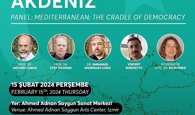 İzmir Büyükşehir Belediyesi Kent Arşivi, Müzeler ve Kütüphaneler Müdürlüğü tarafından 15 Şubat saat 16.00’da “Demokrasinin Beşiği Akdeniz” paneli Ahmed Adnan Saygun Sanat Merkezi’nde (AASSM) düzenlenecek. Uluslararası nitelikteki panelin konuşmacıları ise Prof. Dr. Eyüp Özveren (Orta Doğu Teknik Üniversitesi), Prof. Dr. Antonis Liakos (Atina Üniversitesi-Yunanistan), Dr. Emmanuel Rodriguez Lopez (Yazar-İspanya) ve Vincent Benedetto (Rouen Üniversitesi-IFEA-Fransa) olacak. Panelin moderatörlüğünü ise İzmir Kâtip Çelebi Üniversitesi’nden Doç. Dr. Selin Önen üstlenecek.100 YILI AŞAN DEMOKRATİKLEŞME SÜRECİ ELE ALINACAK“Demokrasinin Beşiği Akdeniz” panelinde Yunanistan, İspanya, Fransa ve Türkiye’de geçmişten günümüze demokratikleşme süreçleri ve bu sürecin Akdeniz ve dünyadaki etkileri konuşulacak. Akdeniz coğrafyasında tarihsel süreçte yaşanan olayları, siyasal, toplumsal değişimleri ve demokrasinin evrimini odağına alacak “Demokrasinin Beşiği Akdeniz” panelinde, Cumhuriyetin 100 yılı aşan demokratikleşme süreci geniş bir çerçevede ele alınacak. Panelde yabancı konuşmacılar sunumlarını İngilizce yapacak, salonda simültane çeviri sistemi de bulunacak.