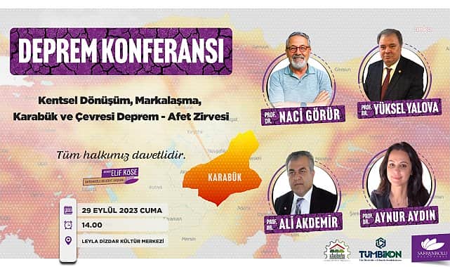 Safranbolu Belediyesi, Tüm Bürokratlar ve İş İnsanları Konfederasyonu ve Karabük Dernekler Federasyonu ortaklığında Safranbolu Belediyesi Leyla Dizdar Kültür Merkezi’nde ‘Kentsel Dönüşüm, Markalaşma, Karabük ve Çevresi Deprem Afet Zirvesi’ düzenlenecek.‘Kentsel Dönüşüm, Markalaşma, Karabük ve Çevresi Deprem - Afet Zirvesi’ Safranbolu Belediyesi, Tüm Bürokratlar ve İş İnsanları Konfederasyonu ve Karabük Dernekler Federasyonu iş birliği ile yarın saat 14.00’te Safranbolu Belediyesi Leyla Dizdar Kültür Merkezi'nde gerçekleştirilecek. Karabük’ün tüm ilçeleri ile tanınırlığının arttırılması, turizmin geliştirilmesi üzerine önemli isimlerin katılımı ile düzenlenecek zirvede aynı zamanda 1. Derece deprem bölgesinde yer alan Karabük’ün meydana gelebilecek afetlere karşı alması gereken tedbirler, uyarılar konuşulacak. Kentsel Dönüşüm, Markalaşma, Karabük ve Çevresi Deprem - Afet Zirvesi’nde açılış konuşmaları Safranbolu Belediye Başkanı Elif Köse, AK Parti Karabük Milletvekili Cem Şahin, CHP Karabük Milletvekili Cevdet Akay, Karabük Valisi Mustafa Yavuz tarafından yapılacak.Zirve’de Prof. Dr. Naci Görür, 'Türkiye, Deprem ve Karabük'; 21. Dönem TBMM Başkanvekili ve 57. Dönem Devlet Bakanı Prof. Dr. Yüksel Yalova 'Akıllı Kentler ve Markalaşma'; Prof. Dr. Ali Akdemir 'STK’ların Deprem ve Afetlerdeki Önemi'; Prof. Dr. Aynur Aydın 'Afet Yönetimi ve Doğal Kaynaklar' isimli sunumlarıyla bilgilendirme yapacak.