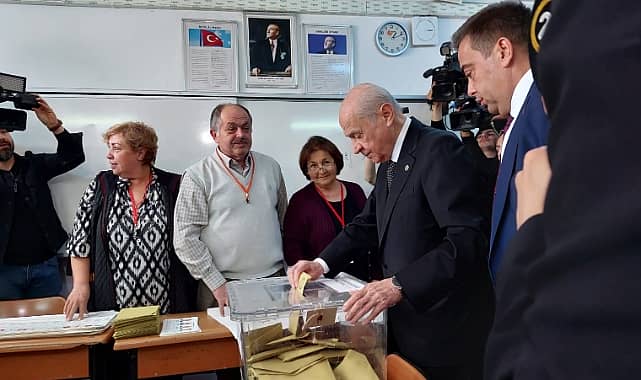 MHP Genel Başkanı Devlet Bahçeli, oyunu Ankara'da kullandı. Bahçeli, "Türk siyasi hayatında önemli bir seçim. Bu seçime yüksek bir katılım olduğu görülmekte. İnşallah milletimize hayırlı uğurlu olsun" dedi.Devlet Bahçeli, cumhurbaşkanı ve milletvekili seçimleri için oyunu, Ankara'nın Çankaya ilçesindeki Anıttepe Ortaokulu’nda kullandı. Okul bahçesinde açıklama yapan Bahçeli, şunları söyledi:"Allah nasip etti, bugün oyumuzu verme görevimizi yerine getirmiş olduk. Türk siyasi hayatında önemli bir seçim. Bu seçime yüksek bir katılım olduğu görülmekte. İnşallah milletimize hayırlı uğurlu olsun. Bütün siyasi partilerimize başarılar diliyorum."Bahçeli, seçim sonuçlarını MHP Genel Merkezi’nde takip edecek.
