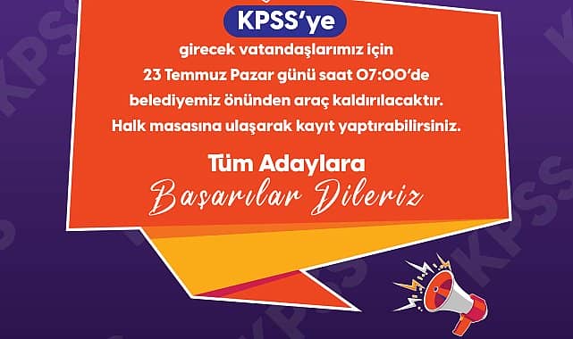 Konu ile ilgili sosyal medya hesaplarından bilgilendirmede bulunan Didim Belediyesi, “KPSS’ye girecek vatandaşlarımız için 23 Temmuz Pazar günü saat 07.00’de Didim Belediyesi önünden araç kaldırılacaktır. Belediyemiz halk masasından ya da 444 81 09 ‘u arayarak kayıt yaptırabilirsiniz" ifadelerine yer verdi.