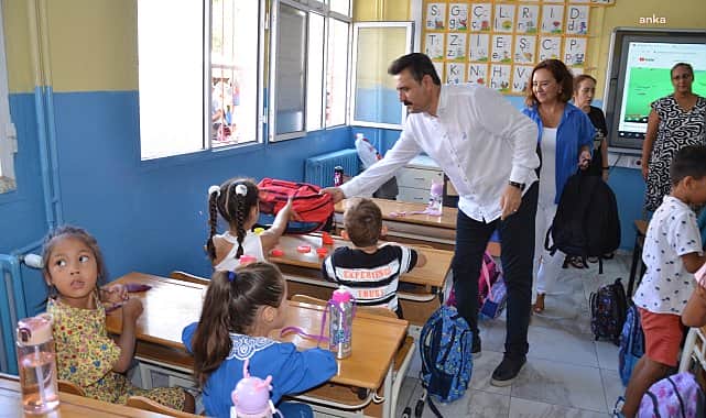 Okul hayatına yeni başlayan minik öğrenciler ile bir araya gelen Dikili Belediye Başkanı Adil Kırgöz, hem hediyelerini verdi hem de başarı dileklerinde bulundu.