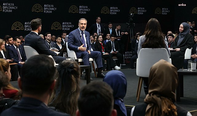 (ANTALYA) - Dışişleri Bakanı Hakan Fidan, Dördüncü Antalya Diplomasi Forumu (ADF-2025) kapsamında düzenlenen Youth oturumuna katıldı.Dışişleri Bakanı Fidan, Antalya Belek'teki NEST Kongre Merkezi’ndeki ADF-2025 kapsamında dün düzenlenen Youth oturumunda gençlerle bir araya geldi.