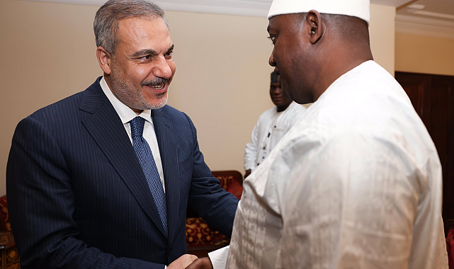 (ANKARA) - Dışişleri Bakanı Hakan Fidan, İslam İşbirliği Teşkilatı 15. Zirvesi'ne katılmak üzere gittiği Banjul’da, Gambiya Cumhurbaşkanı Adama Barrow tarafından kabul edildi.Dışişleri Bakanlığı'nın sosyal medya hesabından yapılan paylaşımda görüşmeden tek kare fotoğraf, "Bakanımız Hakan Fidan, İslam İşbirliği Teşkilatı 15. Zirvesi'ne katılmak için gittiği Banjul’da, Gambiya Cumhurbaşkanı Adama Barrow tarafından kabul edildi" ifadeleriyle paylaşıldı.