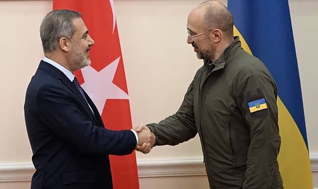 Dışişleri Bakanı Hakan Fidan, Ukrayna’nın başkenti Kiev’de Ukrayna Başbakanı Denis Şmihal ile görüştü.Dışişleri Bakanı Hakan Fidan, resmi temaslarda bulunmak üzere Ukrayna’ya gitti. Fidan bugün Ukrayna’nın başkenti Kiev’de Ukrayna Başbakanı Denis Şmihal ile görüştü. Dışişleri Bakanlığı’nın sosyal medya hesabından yapılan paylaşımda, “Bakanımız Hakan Fidan Ukrayna Başbakanı Denis Şmihal ile Kiev’de biraraya geldi” denildi.Şmihal ise sosyal medya paylaşımında şu ifadeleri kullandı:“Ticari ve ekonomik iş birliği ile Ukrayna’nın yeniden inşası konularını ele aldık. Türkiye’nin Volodimir Zelenski’nin Barış Formülü’ne verdiği destek ve küresel gıda güvenliğinin sağlanmasına yaptığı yardımdan dolayı minnettarız.”