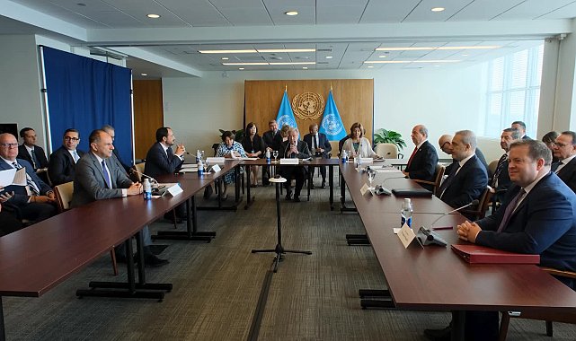 (ANKARA) - Dışişleri Bakanı Hakan Fidan, New York'taki Birleşmiş Milletler (BM) Genel Merkezi'nde düzenlenen Kıbrıs konulu genişletilmiş formatlı gayriresmi toplantıya katıldı. Dışişleri Bakanı Hakan Fidan, New York'ta Kıbrıs konulu genişletilmiş formatlı gayriresmi toplantıya katıldı. Toplantıda taraflar, BM Genel Sekreteri Antonio Guterres, KKTC Cumhurbaşkanı Ersin Tatar, Güney Kıbrıs Rum Yönetimi (GKRY) Lideri Nikos Hristodulidis, Yunanistan Dışişleri Bakanı Yorgo Gerapetritis ve Birleşik Krallık Dışişleri Bakanlığı'nda Avrupa ve Kuzey Amerika'da Sorumlu Devlet Bakanı Stephen Doughty tarafından temsil ediliyor. Toplantıya Guterres'in Kıbrıs Şahsi Temsilcisi Maria Angela Holguin Cuellar da katıldı.