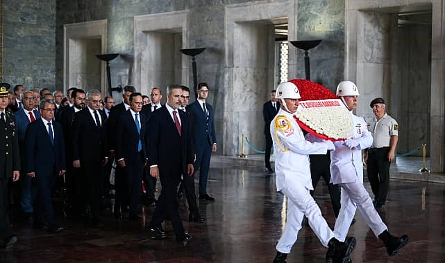 Dışişleri Bakanı Hakan Fidan, 14. Büyükelçiler Konferansı kapsamında Anıtkabir’i ziyaret etti. Mustafa Kemal Atatürk’ün mozolesine çelenk bırakan Fidan, “İlelebet payidar kalacak Cumhuriyet’imizin yüzüncü yıl dönümüne denk gelen bu yılki Büyükelçiler Konferansı’mızın teması ‘Türkiye Yüzyılı’nda Dış Politikamız’dır. Bu konferansta kökleri beş asrı aşan tarihi bir mirasa dayanan diplomasimizi Cumhuriyet’imizin yeni yüz yılında ülkemizin barışı, istikrarı, refahı ve güvenliğine yapacağı katkıları bütüncül bir anlayışla değerlendireceğiz” dedi.Dışişleri Bakanı Hakan Fidan, 14.Büyükelçiler Konferansı kapsamında beraberindeki heyet ile Anıtkabir’i ziyaret etti. Mustafa Kemal Atatürk’ün mozolesine çelenk koyan Fidan, ardından Anıtkabir Özel Defteri’ni imzaladı. Fidan, şöyle konuştu:“14.Büyükelçiler Konferansı vesilesiyle Büyükelçilerimiz ile birlikte huzurunuzda olmaktan şeref duyuyoruz. Bugün Türkiye Cumhuriyeti, çizdiğiniz hedefler doğrultusunda azim ve kararlılıkla hiç durmadan yürümekte, bıraktığınız mirası her geçen gün daha da ileri taşıyacak adımları cesaretle atmaktadır. Diplomasimiz bu kutlu yürüyüşün önemli aşamalarından birini teşkil etmektedir. Bakanlığımız 260 dış temsilciliği ile şanlı bayrağımızı dünyanın her köşesinde eşsiz bir gururla dalgalandırmaktadır. İlelebet payidar kalacak Cumhuriyet’imizin yüzüncü yıl dönümüne denk gelen bu yılki Büyükelçiler Konferansı’mızın teması ‘Türkiye Yüzyılı’nda Dış Politikamız’dır. Bu konferansta kökleri beş asrı aşan tarihi bir mirasa dayanan diplomasimizi Cumhuriyet’imizin yeni yüz yılında ülkemizin barışı, istikrarı, refahı ve güvenliğine yapacağı katkıları bütüncül bir anlayışla değerlendireceğiz.”