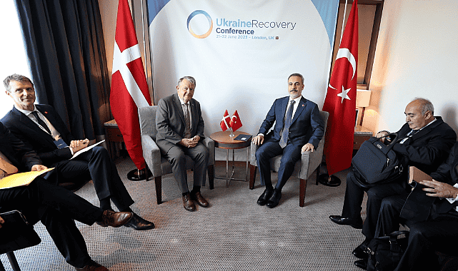 Dışişleri Bakanı Hakan Fidan, Ukrayna İyileştirme Konferansı’na katılmak üzere gittiği Londra’da ABD Dışişleri Bakanı Antony Blinken ile görüştü. Fidan ayrıca, Danimarka Dışişleri Bakanı Lars Lökke Rasmussen, İtalya Dışişleri Bakanı Antonio Tajani, Almanya Dışişleri Bakanı Annalena Baerbock ve Avusturya Dışişleri Bakanı Alexander Schallenberg ile bir araya geldi.Dışişleri Bakanı Hakan Fidan, Ukrayna İyileştirme Konferansı’na katılmak üzere bugün İngiltere’nin başkenti Londra’ya gitti. ABD Dışişleri Bakanı Antony Blinken ile görüşen Fidan bir dizi temasta da bulundu. Fidan, Danimarka Dışişleri Bakanı Lars Lökke Rasmussen, İtalya Dışişleri Bakanı Antonio Tajani, Almanya Dışişleri Bakanı Annalena Baerbock ve Avusturya Dışişleri Bakanı Alexander Schallenberg ile görüştü. Dışişleri Bakanlığı sosyal medya hesabından görüşmelerden fotoğraf paylaştı.