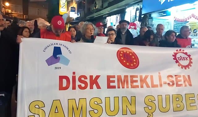 DİSK Emekli-Sen Sendikası Samsun Şubesi, dün akşam İlkadım ilçesi Süleymaniye Geçidi'nde basın açıklaması yaptı. DİSK Emekli-Sen Samsun Şube Sekreteri Ayten Kutlu, şunları söyledi: