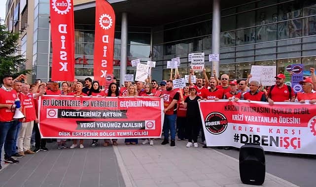 Eskişehir’de DİSK’in çağrısıyla bir araya gelen işçiler, artan vergilere ve hayat pahalılığına tepki gösterdi. Dün akşam saatlerinde bir alışveriş merkezi önünde toplanan işçiler adına basın açıklaması yapan DİSK Eskişehir Bölge Temsilcisi Zeynep Kaya, zamları ve vergi artışlarının durmak bilmediğini, seçimlerden önce kaşıkla verilen ne varsa şimdi kepçeyle, kazanla geri alındığını ifade etti.