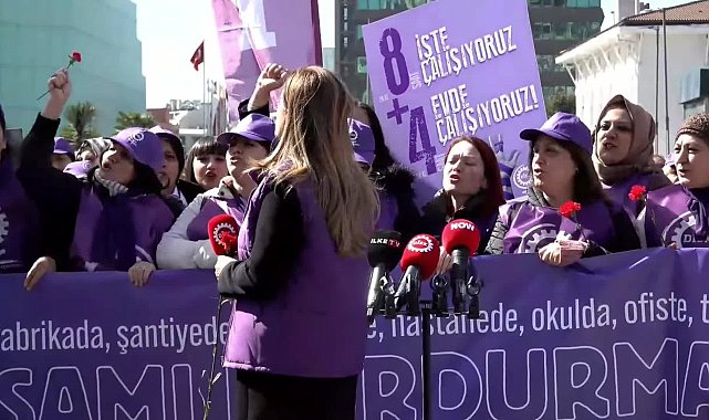 Kadınlar olarak, emeğimize, bedenimize ve kimliğimize sahip çıkıyoruz. Eşit işe eşit ücret, kadın cinayetleri ve kadına yönelik şiddete karşı mücadele, İstanbul Sözleşmesi’nin uygulanması, ILO’nun 190 sayılı Sözleşmesi’nin onaylanması ve bakım yükünün kadınların üzerinden alacak kamusal sosyal politikaların hayata geçirilmesi için mücadelemizi yükseltiyoruz. Biz kadınlar, 8 Mart’a giderken hayat pahalılığına, düşük ücretlere, güvencesiz istihdam politikalarına ve ayrımcılığa karşı itiraz sesimizi yeniden yükseltiyoruz. Hem çalışma hayatında hem de görünmeyen ev içi emeğimizdeki eşitsizliklere, güvencesizliğe, baskılara, şiddet ve tacize karşı birlikte duruyoruz. Yaptığımız işi, yıkadığımız bulaşığı, çamaşırı bıraktık. ‘Fabrikadan, atölyeden, ofisten, plazadan, belediyeden, hastaneden, okuldan, evden’ çıktık; meydanlarda ve sokaklarda haklarımız için bir aradayız."Kadınların üzerinden bakım yükünü alacak kamusal sosyal politikalar hayata geçirilsin"