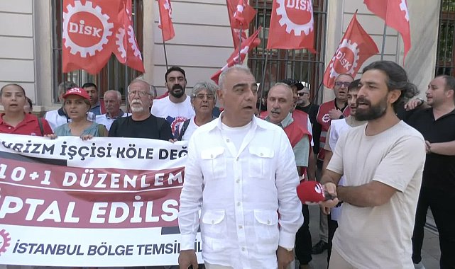 (İSTANBUL) - Devrimci İşçi Sendikaları Konfederasyonu (DİSK) İstanbul Bölge Temsilciliği, turizm işçilerine 10 gün çalışma 1 gün izin düzenlemesini İstanbul İl Kültür ve Turizm Müdürlüğü önünde protesto etti. Burada yapılan açıklamada, “Bu hak gasbı sadece turizm emekçilerini değil, tüm işçileri ilgilendiriyor. Dinlenme hakkı pazarlık konusu yapılamaz" denildi.DİSK İstanbul Bölge Temsilciliği, turizm işçilerine "10 gün çalışma 1 gün" düzenlemesine karşı İstanbul İl Kültür ve Turizm Müdürlüğü önünde protesto etti. DİSK adına konuşan Asalettin Aslan, "Bu hak gasbı yalnızca turizm emekçilerini değil, emeğiyle geçinen tüm işçileri ilgilendiriyor” dedi.“Fazla mesai ücreti de yok, dinlenme hakkı da”Yasayla birlikte Kültür ve Turizm Bakanlığı’ndan belgeli konaklama tesislerinde çalışan işçilerin artık 6 değil, 10 gün çalıştıktan sonra ancak 1 gün dinlenebileceğini hatırlatan Aslan, hafta tatilinde çalıştırılan işçiye fazla mesai ücreti de ödenmeyeceğini vurguladı. “İşçinin dinlenme hakkı işverenin takdirine bırakılmış, bu da açıkça gasp anlamına gelmektedir” ifadelerini kullandı.“Anayasa’ya ve uluslararasi sözleşmelere aykırı”Yeni düzenlemenin yalnızca İş Kanunu’na değil, Anayasa’da güvence altına alınan dinlenme hakkına ve Türkiye’nin taraf olduğu uluslararası sözleşmelere de aykırı olduğunu belirten Aslan, “Haftalık en az 24 saatlik kesintisiz dinlenme hakkı yalnızca yasal değil, aynı zamanda insani bir zorunluluktur. Bu düzenleme açıkça Anayasa’ya aykırıdır” dedi.“Kölelik benzeri çalışma koşulları meşrulaştırılıyor”Turizm sektöründe uzun süredir hak ihlalleri yaşandığını belirten Aslan, “2016’da denkleştirme süresi 2 aydan 4 aya çıkarılmıştı. Şimdi de haftalık dinlenme hakkı ortadan kaldırıldı. Bu sistem işçilerin sezon boyunca 11 saate kadar çalıştırılmasına, fazla mesai ödenmeden sömürülmesine yol açıyor” ifadelerini kullandı.“Bu yasa tüm sektörler için tehlikeli bir emsal oluşturuyor”Bu düzenlemenin turizm sektörüyle sınırlı kalmayabileceğine dikkat çeken Aslan, inşaat gibi sektörlerden benzer taleplerin geldiğini ifade ederek “Bugün turizm, yarın başka sektörler. Bu yüzden bu hak gaspına karşı çıkmak tüm işçilerin sorumluluğudur” denildi.“Düzenleme Anayasa Mahkemesi’ne götürülmeli”DİSK, düzenlemenin Anayasa Mahkemesi tarafından iptal edilmesi için gerekli girişimlerin başlatılacağını da duyurdu. “Anayasa’nın hem dinlenme hakkı hem de eşitlik ilkesiyle ilgili hükümlerine açıkça aykırı olan bu düzenleme iptal edilmelidir” denildi.“İnadına sendika, inadına DİSK!”Aslan, tüm işçilere çağrısı yaparak “Bu düzenleme karşısında yan yana, omuz omuza durmalıyız. Hakkımız olanı almak için mücadeleye devam edeceğiz. İnadına sendika, inadına DİSK!” dedi.
