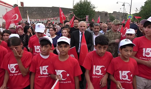 AHMET ÜN (DİYARBAKIR) - Diyarbakır’da, 15 Temmuz Demokrasi ve Milli Birlik Günü anma etkinlikleri kapsamında tarihi Sur ilçesindeki Keçi Burcu’ndan Kurşunlu Camii’ne yürüyüş düzenlendi.15 Temmuz Demokrasi ve Milli Birlik Günü nedeniyle Diyarbakır Valiliği’nce anma programı düzenlendi. Vali Murat Zorluoğlu, eşi Sevcan Zorluoğlu, kamu kurum ve kuruluşu yöneticileri, sivil toplum kuruluşu temsilcileri ve yüzlerce kişinin katılımıyla Sur ilçesindeki Keçi Burcu’ndan bando eşliğinde Kurşunlu Camii’ne yürüyüş düzenlendi.Kurşunlu Camii’nde son bulan yürüyüşün ardından 15 Temmuz Demokrasi ve Milli Birlik Günü etkinlikleri düzenlendi. Saygı duruşu, İstiklal Marşı’nın okunmasıyla başlayan program, Kur’an-ı Kerim tilavetiyle devam etti. Programda konuşan Vali Murat Zorluoğlu, 15 Temmuz darbe girişimine karşı duran herkese müteşekkir olduklarını söyledi. Vali Zorluoğlu, “Bugün, hain darbe girişiminin 8. senesinde, bir taraftan 251 vatandaşımızı bir gecede şehit vermenin derin hüznünü tekrar yaşarken, diğer taraftan da dünyada eşine rastlanmayan bir direnişe milletçe imza atmanın gururunu yeniden yaşıyoruz. Sezai Karakoç, ‘Geceye yenilmeyen her insana ödül olarak bir sabah, bir gündüz ve bir güneş vardır’ diyor. 15 temmuzda 2016’da tanklara, uçaklara meydan okuyarak, mermilere adeta göğüslerini siper ederek kendi cumhurbaşkanımı, kendi hükümetimi, kendi meclisimi ben belirlerim, darbeci alçaklara irademi teslim etmem diyen aziz milletimizin her bir ferdine müteşekkiriz” dedi. ‘15 Temmuz’un hikayesi her etnik kökenden kahraman milletimizin ortak başarısıdır’ “15 Temmuz sadece benim, sadece senin ya da sadece belli bir kesimin hikayesi değildir. 15 Temmuz bilakis her dünya görüşünden, her mezhepten, her meşrepten, her inançtan ve her etnik kökenden kahraman milletimizin ortak başarısıdır” diyen Vali Zorluoğlu, “15 Temmuz 85 milyonun hep birlikte verdiği şanlı direnişin ve destanlaştırdığı kutlu mücadelenin adıdır. Gazi Mustafa Kemal Atatürk’ün İstiklal Harbini başlatmasını ve zafere ulaştırmasını sağlayan inancın bir benzeri, 15 temmuz gecesi tüm şehirlerimizde yeniden sergilenmiştir. Sayın Cumhurbaşkanımız Recep Tayyip Erdoğan’ın ifade ettikleri gibi, Türk milleti 100 yıl önce Çanakkale’de hangi inanç ve kararlılıkla düşmanın karşısına dikilmişse, 15 Temmuz’da da aynı duygularla darbecilerin karşısına dikilmiştir” şeklinde konuştu.
