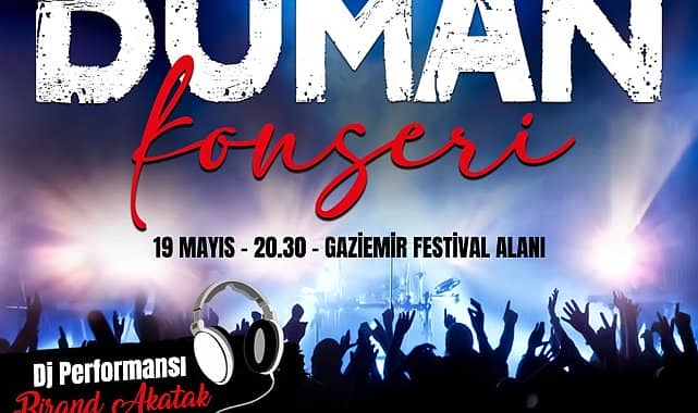 Gaziemir Belediyesi, 19 Mayıs Atatürk'ü Anma, Gençlik ve Spor Bayramı etkinlikleri kapsamında Duman konseri ve 12. Gaziemir Belediyesi Halk Dansları Gecesi düzenleyecek.19 Mayıs Atatürk'ü Anma, Gençlik ve Spor Bayramı, Gaziemir Belediyesi'nin düzenlediği etkinliklerle büyük bir coşkuyla kutlanacak. Bayram kutlamaları kapsamında düzenlenecek 12. Gaziemir Belediyesi Halk Dansları Gecesi’nde, belediyenin kursiyerleri kurslarda öğrendiklerini sahneleyecek. 18 Mayıs Perşembe günü saat 20.00’de Festival Alanı’nda düzenlenecek gecede, 13 farklı yöreden halk oyunları sahneleyecek kursiyerler, izleyenlere görsel şölen yaşatacak.19 Mayıs Cuma günü ise Duman grubu Festival Alanı’nda sahne alacak. Duman, alanı dolduracak binlerce hayranıyla birlikte şarkılarını seslendirecek. Konser saat 20.30’da başlayacak.Herkesi bayram coşkusuna ortak olmaya davet eden Belediye Başkanı Halil Arda, “Büyük Önderimiz Mustafa Kemal Atatürk, 104 yıl önce Samsun’da attığı ilk adımla tarihin akışını, Türk milletinin kaderini değiştirdi. Atamızın açtığı özgürlük ve çağdaşlaşma yolunda güçlü adımlarla yarınlara yürüyoruz. Tüm yurttaşlarımızı ve özellikle gençlerimizi, 19 Mayıs Atatürk'ü Anma, Gençlik ve Spor Bayramımızı büyük bir coşku ve gururla kutlamaya davet ediyorum” diye konuştu.