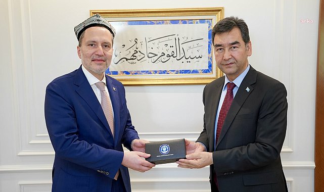 (ANKARA) - Dünya Uygur Kurultayı Vakfı Başkanı Abdulreşit Abdulhamit ve beraberindeki heyet, Yeniden Refah Partisi Genel Başkanı Dr. Fatih Erbakan'ı parti genel merkezinde ziyaret etti.Yeniden Refah Partisi'nin sosyal medya hesabından yapılan paylaşımda, "Dünya Uygur Kurultayı Vakfı Başkanı Abdulreşit Abdulhamit ve heyeti, Genel Başkanımız Dr. Fatih Erbakan’ı ziyaret ederek Uygur Türklerine yönelik zulmü anlattılar. Yeniden Refah Partisi olarak Uygur Türklerinin yanında olmaya, haklı davalarına destek vermeye devam edeceğiz." ifadesi kullanıldı.