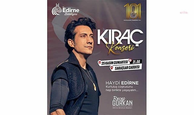 Edirne Belediye Başkanlığı, kentin kurtuluşunun 101. yılını özel bir konser ile kutlamaya hazırlanıyor. Ünlü sanatçı Kıraç’ın sahne alacağı ve en güzel şarkılarını Edirneliler için söyleyeceği konsere tüm Edirnelileri davet eden Edirne Belediye Başkanı Recep Gürkan, “Hem Cumhuriyetimizin 100. yılını hem de Edirne’nin Kurtuluşunun 101. yılını ünlü sanatçı Kıraç’ın muhteşem konseriyle coşkuyla kutlayacak; sonsuza kadar sürecek olan özgürlüğümüzü ve bağımsızlığımızı tüm dünyaya bir kez daha haykıracağız” dedi.Edirne Belediyesi, Edirne’nin kurtuluşunun 101. yılını büyük bir coşkuyla kutlamaya hazırlanıyor. Edirne’nin kurtuluşunun 101. yılında 25 Kasım Cumartesi Günü, resmi geçit törenlerinin yanı sıra akşam 21.00’de Saraçlar Caddesi’nde de 101. Yıl Kurtuluş Konseri düzenlenecek.Kurtuluş coşkusunun yaşanacağı ve ünlü sanatçı Kıraç’ın en güzel şarkılarını Edirneliler için seslendireceği konsere tüm Edirne halkını davet eden Edirne Belediye Başkanı Recep Gürkan, “Tarihi boyunca birçok kez işgale uğrayan kadim şehrimiz Mudanya Ateşkes Mütarekesi’yle 25 Kasım 1922 yılında bir daha terk edilmemek üzere ebedi Türk Yurdu olarak tarihe adını yazdırmıştır. O gün bugündür, bu topraklarda özgürce yaşamakta; geleceğe umutla bakmaktayız. Ne mutlu ki sonsuza kadar sürecek olan özgürlüğümüzün ve bağımsızlığımızın bir asrını geride bıraktık. İkinci asırda da Edirneliler olarak, Ulu Önderimiz Mustafa Kemal Atatürk’ün izinden gitmeye, devrimlerinin bekçisi olmaya, en büyük emaneti olan Cumhuriyeti’mizi ilelebet yaşatmaya kararlıyız. Kurtuluşumuzun 101. yılı kutlu olsun” dedi.Bu önemli günü ünlü sanatçı Kıraç’ın Saraçlar Caddesi’nde vereceği muhteşem konserle kutlayacaklarını belirten Gürkan, “Hem Cumhuriyetimizin 100. yılını hem de Edirne’nin Kurtuluşunun 101. yılını ünlü sanatçı Kıraç’ın muhteşem konseriyle coşkuyla kutlayacak; sonsuza kadar sürecek olan özgürlüğümüzü ve bağımsızlığımızı tüm dünyaya bir kez daha haykıracağız” diyerek, tüm Edirne halkını bu coşkuya ortak olmaya davet etti.