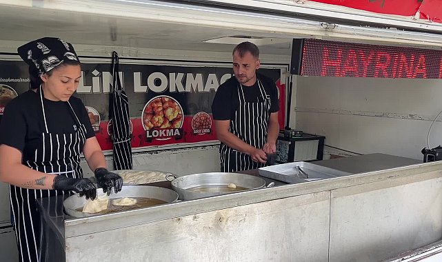 Halk Eğitim Merkezi karşısındaki arabada pişirilen lokmalar, Güllü’nün sevilen şarkıları eşliğinde vatandaşlara ikram edildi.