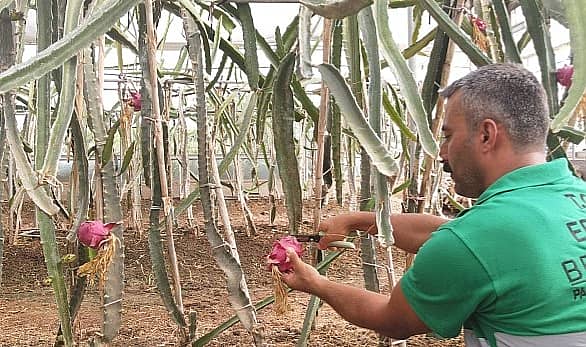 Efeler Belediyesi’nin Şevketiye Mahallesi’ndeki tarım arazisi üzerinde kurulu serada yetiştirdiği ejder meyvelerinin hasadı yapıldı.Efeler Belediye Başkanı Mehmet Fatih Atay, göreve başladığı 2019 yılından itibaren çok sayıda atıl araziyi tarıma açarak çeşitli ürünlerin yetiştirilmesini sağladı. Bunlardan biri de vitamin bakımından çok zengin olan ejder meyvesi oldu. EFE BAKKAL’DA SATIŞA ÇIKTI Şevketiye Mahallesi’nde belediyenin kendisine ait tarım arazisi üstünde kurulan serada yetiştirilen ejder meyvelerinin bu yıl ikinci kez hasadı yapıldı. Besin değeri açısından da faydalı olan tropikal meyve, Kurtuluş ve Girne mahallelerinde hizmet veren Efe Bakkal raflarında vatandaşların beğenisine sunuldu.
