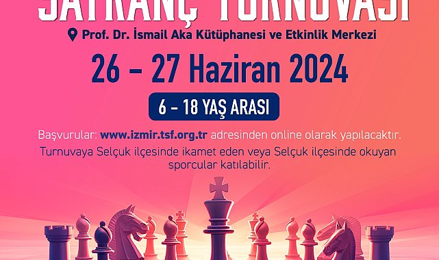 (İZMİR) - 'Efesli Çocuklar Satranç Turnuvası', 26- 27 Haziran günlerinde Prof. Dr. İsmail Aka Kütüphanesi ve Sosyal Etkinlik Merkezi’nde düzenlenecek. Efes Selçuk Belediyesi ve İzmir Satranç İl Temsilciliği iş birliği ile düzenlenecek turnuvaya katılım gösterecek çocuklar için son başvuru tarihi 25 Haziran 2024.Satrancı gelecek nesillere sevdirmek ve çocukların hayatına dahil etmek amacıyla düzenlenen turnuva kapsamında başvurular, 'http://www.izmir.tsf.org.tr/' adresi üzerinden online olarak yapılacak. Turnuvaya, Efes Selçuk’ta ikamet eden ve Efes Selçuk’ta eğitim gören 6- 18 yaş arası çocuklar başvuru yapabilecek. 8,10,14 ve 18 yaş altı olmak üzere dört ayrı yaş grubu için düzenlenecek turnuva çerçevesinde ilk beşe giren çocuklara kupa verilecek. Turnuva kapsamında müsabakalar, 26- 27 Haziran’da saat 10.00’da başlayacak.Efesli Çocuklar Satranç Turnuvası ile ilgili ayrıntılı bilgiye, Türkiye Satranç Federasyonu İzmir İl Temsilciliği internet sitesi üzerinden ulaşılabilecek.