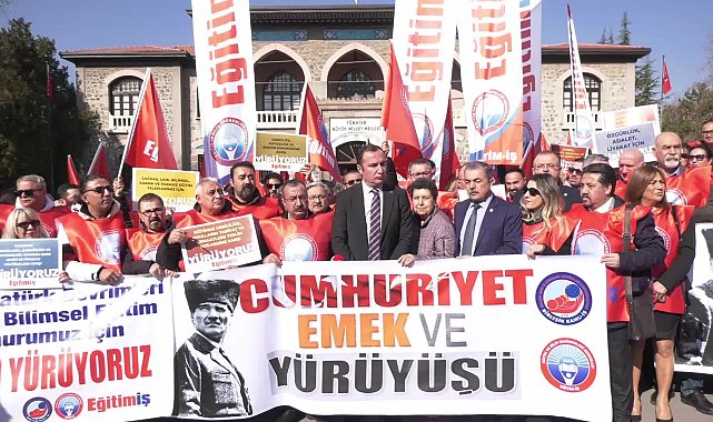 (ANKARA) - Eğitim-İş Sendikası Genel Başkanı Kadem Özbay, Ulus’ta Birinci Meclis önünden “Cumhuriyet ve Emek Yürüyüşü”nü başlattıklarını açıkladı. Özbay, okulların devlet korumasından çıkarılarak protokollerle tarikat ve cemaatlere teslim edildiğini söyleyerek “Çocuklarımızın adına sıbyan mektebi, medrese denilen yasal olmayan kuruluşlara yönlendirmesi üzerine kararlar alınmaktadır. Cumhuriyet hiçbir kişiye, aileye, zümreye ve sınıfa imtiyaz tanıyamaz. Oysa Milli Eğitim Bakanlığı, papalık makamı gibi davranarak insanların inançları adına karar alabilmektedir. 400 bin çocuğumuz sözde açık öğretim adı altında medrese denilen yerlere tarikat ve cemaat yerlerine yönlendirilmektedir” diye konuştu.Eğitim-İş Sendikası Genel Başkanı Kadem Özbay, “Atatürk devrimleri, emeğin onuru, laik eğitim ve aydınlık bir gelecek için” Birinci Meclis önünden “Cumhuriyet ve Emek Yürüyüşü” başlattıklarını açıkladı. “Okullar ve öğretim programları inançlara karşı tarafsız olma özelliğini yitirmiştir”Özbay, Birinci Meclis önünde yaptığı açıklamada; okulların devlet korumasından çıkarılarak protokollerle tarikat ve cemaatlere teslim edildiğini belirterek şunları söyledi:“Okullarımız devletin korumasından çıkarılarak sözde protokollerle etkinlik adı altında tarikat ve cemaatlere teslim edilmektedir. Çocuklarımızın adına sıbyan mektebi, medrese denilen yasal olmayan kuruluşlara yönlendirmesi üzerine kararlar alınmaktadır. Eğitimimizin temel ilkeleri doğrudan bakanlık eliyle kararlı biçimde yok edilmektedir. Artık okullarımız öğretim programları, mekanları kasıtlı olarak yönetici yapılan kişiler eliyle inançlara karşı tarafsız olma özelliğini yitirmiştir. Cumhuriyetin yurttaşlarımızı birleştirme ve bütünleştirmede en temel ilkesi olan laiklik ilkesi kamu hizmetiyle yükümlü olan zorunlu eğitimden uzaklaştırılmaktadır.“400 bin çocuk açık öğretim adı altında medrese denilen tarikat ve cemaat yerlerine yönlendiriliyor”Laik devletin yurttaşlarına karşı sorumluluğu, inanç özgürlüğü açısından herkese eşit uzaklıkta olmasıdır. Bunu sağlamayan devlet, anayasanın en temel ilkesini, eşitlik ilkesini ayaklar altına alan devlettir. Cumhuriyet hiçbir kişiye, aileye, zümreye ve sınıfa imtiyaz tanıyamaz. Oysa Milli Eğitim Bakanlığı kendini ruhban sınıfı yerine koymakta, papalık makamı gibi davranarak insanların inançları adına karar alabilmektedir. Adrese dayalı nüfus kayıt sistemi üzerinden çocuklarımızı okula kayıt yapan bir ülkeyiz ama buna rağmen 612 bin 814 çocuğumuz okul dışında. 400 bin çocuğumuz sözde açık öğretim adı altında medrese denilen yerlere tarikat ve cemaat yerlerine yönlendirilmektedir. 500 binin üzerinde çocuk MESEM'lerde çocuk işçi olarak çalıştırılmakta. Bir yılda yalnızca 12 çocuğumuz buralarda can verdi. Adı zorunlu eğitim ama bir buçuk milyon çocuk yok. Siz Milli Eğitim Bakanlığı'nın tek bir suç duyurusunu gördünüz İşte bu organize kötülüğün içinde olduklarının şartıdır.”“AKP iktidarı ve Yusuf Tekin’in zihniyetinin dayatmanızdan kaçarak özel okullara yükleniyorlar”Özbay, bir buçuk milyon yurttaşın çocuklarını özel okula gönderdiğine dikkat çekerek “Neden zorunlu eğitim varken insanlar özel okula gönderiyor? Senden kaçtıkları için Yusuf Tekin, senden kaçtıkları için AKP iktidarı. Çocuklarını okulda korumadığın için çocuklarına belki daha iyi bir eğitim verilebilir diye Anayasası’nda zorunlu eğitim yazması rağmen ceplerinden para veriyorlar. Senin ve sizin zihniyetinizin dayatmanızdan kaçarak özel okullara yükleniyorlar” diye konuştu.“Milli Eğitim Bakanlığı denetiminde altı yaşındaki kız çocuğu tarikat mensubuyla evlendirilmiş”Çocukların ancak başlarına bir şey geldiğinde öğrenildiğini belirten Özbay, “12 yaşında Abdülbaki Dakak iki yıl okula gitmiyor, sonra bir bakıyoruz ki medreseye gidiyormuş ve bir ahırda kendini asarak intihar ediyor. Altı yaşında kız çocuğu bir tarikat mensubuyla evlendirilmiş. Kimin denetiminde? Milli Eğitim Bakanlığı denetiminde. Haberi var mı? Hepsini biliyorlar. İşte o nedenle bu ülkeye bile bile bir kötülük yapıyorlar. Biz de bunu ifşa edeceğiz” dedi.Eğitim İş’in yürüyüş tarihleriÖzbay, herkesi dayanışmayı büyütmeye, Cumhuriyet’e sahip çıkmaya davet ettiklerini söyleyerek şu ifadeleri kullandı:“O nedenle bugün Atatürk devrimlerinin ilan edildiği ülkenin kurulduğu Birinci Meclis'ten Cumhuriyet ve emek yürüyüşümüzü başlatıyoruz. 8 Şubat'ta Adıyaman'da tarikatları ve depremi vurgulayarak ‘çocuklara, eğitime, geleceğe sahip çıkıyoruz’ diyeceğiz. 15 Şubat'ta Amasya'da Amasya Genelgesi’ne atıf yapıp milletin azim ve kararlılığına güvenimizi, irademizi ve Mustafa Kemal'in eğitimcileri olduğumuzu ilan ederek Amasya'da olacağız.22 Şubat'ta fıtratında var dediğiniz, rant politikalarına kurban ettiğiniz Soma'da ölen madencileri unutturmayacağımızı bir kez daha haykıracağız. 24 Şubat'ta dünyada başöğretmen ünvanında tek lider Mustafa Kemal Atatürk'ün kara tahta başına geçtiği harf inkilabını anlattığı Tekirdağ'dan büyük yürüyüşümüze başlıyoruz. Tekirdağ'dan sonra 25'inde Çanakkale'de ‘Çanakkale geçilmez ve antiemperyalizm’ vurgusunu yapacağız. 26'sında Bursa'da olacağız.“Bu ülkede Bursa nutkunu okumak, Apo’nun mektubunu okumaktan daha riskli hale gelmiştir”Bugün şurada elime iki tane kağıt alsam size göstersem biri Bursa Nutku olsa okusam muhtemelen gözaltına alınabilirim. Ama bu ülkede terörist başının mektubunu halkın vergileriyle TRT'de okutacaksın, Meclis’e çağıracaksın. İşte ülkenin acı tablosu budur. Ba