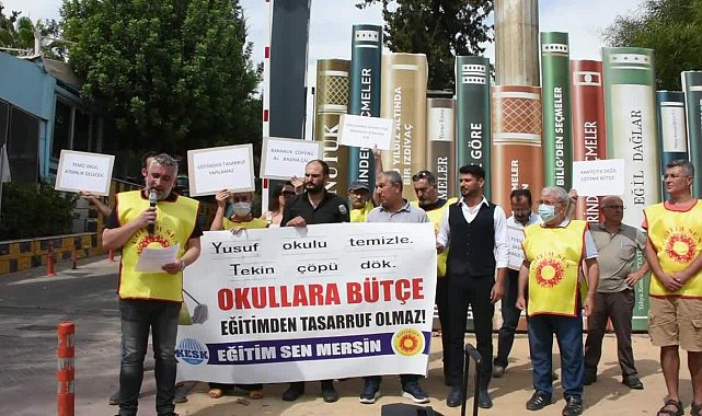 Milli Eğitim Bakanlığı’nın okulların temizlik ve güvenlik işçilerinde görev yapacak ve İşgücü Uyum Programı kapsamında istihdam edilecek işçilerin haftanın 3 günü okullarda çalışması ve 2 gün okullara temizlik işçisi verilmemesi kararına tepkiler sürüyor. Eğitim- Sen Mersin Şubesi üyeleri, Mersin İl Milli Eğitim Müdürlüğü önünde tüm okullara tam zamanlı temizlik ve güvenlik personeli verilmesini talebiyle eylem yaptı. Eylemde, 'Yusuf okulu temizle', 'Tekin çöpü dök', 'Okullara bütçe, eğitimden tasarruf olmaz' yazılı pankartlar açıldı.