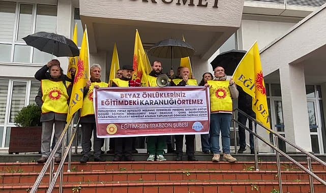 Eğitim Sen Trabzon Şubesi, eğitim sisteminde yaşanan sorunlara dikkat çekmek için Hükümet Konağı önünde açıklama yaptı. Şube Başkanı Muhammet İkinci, "Öğretmenlerin beyaz önlüğe değil; güvenceli, kadrolu, eşit işe eşit ücret ilkesinin uygulandığı, liyakatin esas olduğu bir çalışma yaşamına, insan onuruna yaraşır ücrete ihtiyacı var" dedi.