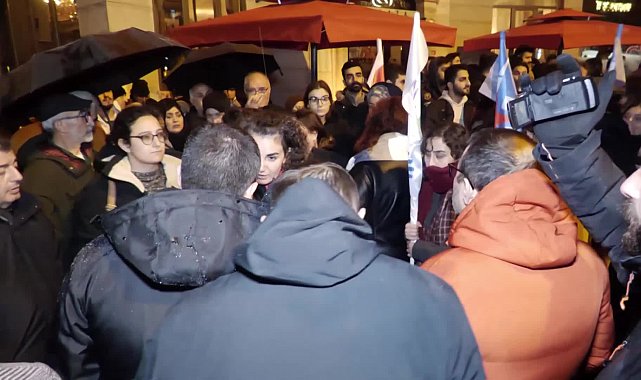 Kamera: Ozan URAL(İSTANBUL) - İstanbul Emek, Barış ve Demokrasi Güçleri akşam saatlerinde Suriye'deki gelişmelerle ilgili "Yeni bir IŞİD'e tahammülümüz yok" başlıklı açıklama yapmak istedi. Ancak, Beyoğlu Kaymakamlığı'nın yasaklama kararı olduğu belirtilerek açıklamaya izin verilmedi, gözaltına alınanlar oldu. Suriye'de Halep ve Hama çevresinde devam eden hareketlilikle ilgili İstanbul Emek, Barış ve Demokrasi Güçleri akşam saatlerinde "Yeni bir IŞİD'e tahammülümüz yok" başlıklı açıklama yapmak istedi. "Suriye'de son günlerde gelişen çatışmalar ve savaş haliyle yeni bir IŞİD yaratılmak isteniyor. Halkların kazanımlarına dönük bu saldırılara dur demek için tüm demokratik çevreleri ses çıkarmaya çağırıyoruz." sözleriyle yapılan çağrı karşısında çevik kuvvet ekipleri başta olmak üzere çok sayıda polis ekibi bölgede önlem aldı.Polis megafonla anons yaparak basın açıklaması ve toplantının Beyoğlu Kaymakamlığı tarafından yasaklandığını duyurdu, "Dağılın" uyarısında bulunuldu.Platform üyeleri polis yetkilileriyle konuşmaya, bilgi almaya çalışırken müdahale başladı. Gözaltına alınanlar oldu.