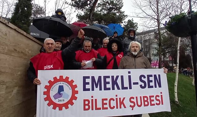 Emekliler Sendikası Bilecik Şubesi, emekli maaşlarına yapılan zamma tepki gösterdi. Sendika yöneticisi Mehmet Döner, "Açlık sınırındaki hiçbir ücret, hiçbir maaş ya da aylık, yaşamımızı idame ettirebilmemizde bir kıstas değildir. İnsanın, sadece beslenme ihtiyacını karşılayarak insanca bir yaşama kavuşamayacağı açıktır. Vergi kaçıranlara, kara para aklayarak zenginleşenlere verilen tavizler, bizlerin sofralarından çaldıklarıdır. Bizlere ısınmayı, ulaşımı, sağlığı, kültürel ve sosyal ihtiyaçlarımızı lüks gören bu zihniyete karşı bir aradayız" dedi.
