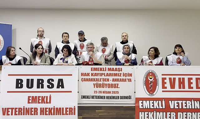 Emekli Veteriner Hekimler Derneği, uğradıkları hak kayıplarını gündeme taşımak için Çanakkale’den Ankara’ya yürüyüş başlattı. Çanakkale’de başlayan yürüyüşün Balıkesir’den sonraki üçüncü durağı Bursa oldu. Dernek Bursa’nın ardından Bilecik ve Eskişehir’de yapacakları açıklamanın ardından 26 Nisan Cumartesi Dünya Veteriner Hekimler Gününde Ankara’da yapacakları basın açıklamasıyla yürüyüşlerini sonlandıracak.