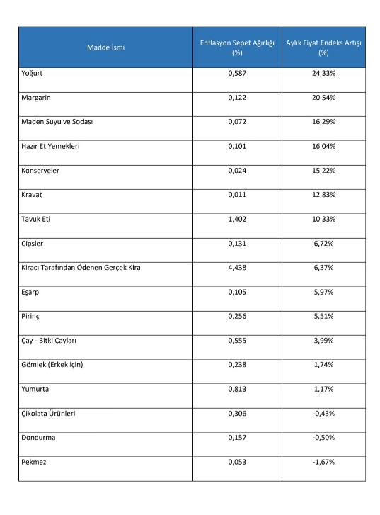 Bağımsız Enflasyon Araştırma Grubu’nun (ENAG) verilerine göre, ağustos ayında tüketici enflasyonu yüzde 8,59 arttı. Yıllık enflasyon ise yüzde 128,05 seviyesine çıktı. Buna göre, aylık fiyat artışında yüzde 26,12 ile sağlık sektörü başı çekti.ENAG, ağustos ayına ilişkin enflasyon hesaplamasını açıkladı. Buna göre, günlük fiyat değişimlerinden elde edilen ENAGrup Tüketici Fiyat Endeksi (E-TÜFE) ağustos ayında yüzde 8,59 arttı. E-TÜFE’nin son 12 aylık artışı yüzde 128,05 olarak gerçekleşti. 2023 yılı, ocak-ağustos dönemi enflasyon oranı ise yüzde 83,96 olduSAĞLIK SEKTÖRÜ YÜZDE 26,12 İLE BAŞI ÇEKTİENAG'ın aylık enflasyon bültenine göre, TÜİK alt grupları gösterge olarak alındığında aylık fiyat artışında sağlık sektörü yüzde 26,12 ile başı çekti. Onu yüzde 21,56 ile haberleşme, yüzde 11,48 ile gıda ve alkolsüz içecekler takip etti. Ağustos ayında fiyatı en az artan sektör ise yüzde 3,08 ile giyim ve ayakkabı oldu.AĞUSTOS AYINDA YÜKSEK FİYAT ARTIŞI YÜZDE 24,33 İLE YOĞURTTAMadde bazında ise en Ağustos ayında yüksek fiyat artışı yüzde 24,33 ile yoğurtta görüldü. Onu, yüzde 20,54 ile margarin, 16,29 ile maden suyu ve soda ile yüzde 16,04 ile hazır et yemekleri ve yüzde 15,22 ile konserveler izledi.