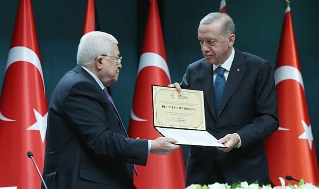 Cumhurbaşkanı Recep Tayyip Erdoğan, Filistin Devlet Başkanı Mahmud Abbas ile Cumhurbaşkanlığı’ndaki ortak basın toplantısında; “Filistin davasını en güçlü şekilde savunmaya, Filistin halkının güvenliğini ve refahını arttırmaya yönelik her gayreti tüm gücümüzle desteklemeye devam edeceğiz. Birleşmiş Milletler (BM) parametreleri temelinde, 1967 sınırlarında, başkenti Doğu Kudüs olan bağımsız bir Filistin devletinin kurulmasının tüm bölgemizin barış ve istikrarı için bir şart olduğunu ifade etmek istiyorum” diye konuştu. Abbas ise “Türkiye’nin Filistin halkına vermiş olduğu destek ve Kudüs’ü savunarak halkın özgürlüğü ve bağımsızlığını kazanması yönündeki desteklerini önemsiyoruz” dedi.Cumhurbaşkanı Recep Tayyip Erdoğan, bugün Türkiye’ye gelen Filistin Devlet Başkanı Mahmud Abbas ile görüştü. Cumhurbaşkanlığı’nda düzenlenen resmi karşılama töreninin ardından liderler ikili görüşmeye geçti. İkili görüşmenin ardından düzenlenen ortak basın toplantısında Erdoğan şöyle konuştu:“CAN KAYIPLARINDAN, YASA DIŞI YERLEŞİMLERİN GENİŞLETİLMESİNDEN VE YERLEŞİMCİ ŞİDDETİNDEN DERİN ENDİŞE DUYUYORUZ”“Bugünkü görüşmemizde Filistin’deki gelişmeleri ayrıntılı şekilde ele aldık. İlişkilerimizin daha da geliştirilmesine yönelik atılabilecek adımları, ikili görüşmemizde, heyetler arası görüşmelerde değerlendirme imkânımız oldu. Filistin devletinin kapasitesinin güçlendirilmesine, Filistin halkının mevcut koşullarının iyileştirilmesine olan desteğimizi teyit ettik. Filistin meselesinin uzun bir süredir uluslararası toplumun gündeminde hak ettiği ilgiyi toplamadığı, toplayamadığı bir vakadır. Başta BM olmak üzere, uluslararası camianın Filistin meselesine güçlü şekilde angaje olması mühimdir. Türkiye olarak Filistin halkıyla dayanışmamızı, Filistin davasına desteğimizi en güçlü şekilde sürdürüyoruz, sürdüreceğiz. Filistin’deki gelişmeleri bu minvalde yakından takip ediyoruz. Gün geçtikçe artan can kayıplarından, yıkımlardan, yasa dışı yerleşimlerin genişletilmesinden ve yerleşimci şiddetinden derin endişe duyuyoruz. Bu vesileyle, hayatını kaybeden Filistinli kardeşlerimize bir kez daha Allah’tan rahmet, Filistin devleti ve halkına baş sağlığı diliyorum."BÖLGEDE ADİL VE KALICI BARIŞIN TEK YOLU İKİ DEVLETLİ ÇÖZÜM"Bölgede adil ve kalıcı bir barışın tek yolu iki devletli çözüm vizyonunu savunmaktan geçmektedir. Mescid-i Aksa başta olmak üzere kutsal mekanların tarihi statükosunun değiştirilmesine yönelik eylemleri de kabul etmemiz mümkün değildir.Filistin davasını en güçlü şekilde savunmaya, Filistin halkının güvenliğini ve refahını arttırmaya yönelik her gayreti tüm gücümüzle desteklemeye devam edeceğiz. BM parametreleri temelinde, 1967 sınırlarında, başkenti Doğu Kudüs olan bağımsız bir Filistin devletinin kurulmasının tüm bölgemizin barış ve istikrarı için bir şart olduğunu ifade etmek istiyorum.”ABBAS: TÜRKİYE’NİN FİLİSTİN HALKINA VERMİŞ OLDUĞU DESTEĞİ ÖNEMSİYORUZFilistin Devlet Başkanı Abbas ise Türkiye’nin Filistin halkına ve Kudüs’ün savunularak bağımsızlığın kazanılması yönündeki desteklerini önemsediğini belirterek, şunları söyledi:"Bu bağlamda Türkiye’nin de her daim daha çok girişim ve atılım kaydetmesini arzu etmekteyim. Son dönemde gerçekleşen seçimlerde başarınızdan dolayı da sizi kutlarım.Bugün burada iki ülke arasındaki ilişkilerin daha da gelişmesi bağlamında neler yapabileceğimizi görüştük. İlişkilerimiz her daim gelişme kaydetmektedir. Bakanlar düzeyindeki toplantıların devam etmesi, Filistin Yatırım Fonu ile Türkiye’deki girişimcilerin katkısıyla Cenin Organize Sanayi Bölgesi’nin yakında faaliyete geçecek olmasından da mutlu olduğumuzu ifade etmek isterim. İsrail hükümeti aşırı sağcı, radikal tutumuyla tüm barışçıl girişimleri baltalamaya çalışmaktadır. Irkçı ve tamamıyla sömürgeye dayalı yaklaşımıyla bu sürece zarar verdiği gibi şimdiye kadar vermiş olduğu sözleri de yerine getirmemiştir."BM TARAFINDAN ALINAN YAKLAŞIK BİN KARARDAN HİÇBİR TANESİ UYGULAMAYA GEÇMEMİŞTİR"Uluslararası toplumun bu konuda aciz kaldığını ve Filistin halkına karşı işlenen suçlara kayıtsız kaldığını görmektedir. BM tarafından alınan yaklaşık bin karardan hiçbir tanesi uygulamaya geçmemiştir.Türkiye her daim Filistin’in uluslararası arenada haklarını savunmakta ve bu bağlamda siyasi girişimlerini sürdürmektedir. Tamamıyla BM’de de aynı şekilde tam üyelik elde etmesi önemli.Kahire’de tekrardan ulusal uzlaşıyı yerine getirmek için girişimde bulunmaktayız. Amacımız tamamıyla Filistin halkını ve topraklarını tehdit eden her sıkıntının ve zorluğun, problemin ortadan kaldırılması olmuştur. Sizlere, Türkiye devletine ve çok kıymetli Türk halkına Filistin davasın ve Filistin halkının yanında yer almasından dolayı minnettarlığımızı ifade ederken bu ziyarette de bize göstermiş olduğunuz yakın ilgi ve misafirperverlikten dolayı teşekkürlerimizi arz etmek isteriz.”
