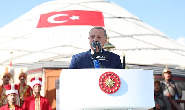 Cumhurbaşkanı Recep Tayyip Erdoğan, Malazgirt Zaferi’nin 952. yıl dönümü programında Muş’ta yaptığı konuşmada; “Sadece son 20 yılda eser ve hizmetlerimizle Cumhuriyetimizin kazanımlarını tahkim ettik. Artık bu güçlü altyapı üzerinde asıl hedeflerimize yönelmenin vaktidir. Bazı başlangıçlar vardır ki tarihin akışını değiştirir. İşte biz de Cumhuriyetimizin yeni asrına böyle bir başlangıçla girmek istiyoruz” dedi.Cumhurbaşkanı Recep Tayyip Erdoğan, Muş’ta; Malazgirt Zaferi’nin 952. yıl dönümünde Malazgirt Milli Park Alanı’nda düzenlenen kutlama programında konuştu.“HER DEĞERİ İSTİSMAR EDER, HERKESİ KULLANIRLAR”Erdoğan, buruda özetle şunları söyledi:“Biz Anadolu’ya Malazgirt ile ayak basmadık. Çok daha öncesinden beri zaten buradaydık. Malazgirt, Anadolu’daki siyasi hükümranlığımızın kapılarını açmıştır… Bu topraklarda yaşayan insanlar; kökenlerine, meşreplerine, farklılıklarına bakmaksızın hep aynı ulvi gaye uğrunda kenetleniyor, bütünleşiyor… Bize insanlığın en eski yurdu Anadolu’yu yar etmek istemeyenlerin birliğimize, beraberliğimize kardeşliğimize saldırmasının sebebi işte budur.Sanmayın ki bunların derdi Türklerdir, Kürtlerdir, Araplardır. Sanmayın ki bunların gayesi haktır, özgürlüktür, eşitliktir, demokrasidir, refahtır. Bunların tek derdi; hepimizi de kuşatan ve maziden atiye uzanan o kadim köprüyü yıkarak yeniden kendilerine alan açmaktır. Asırlardır uğraştıkları halde, ulaşmayı başaramadıkları bu hedef için her değeri istismar eder, herkesi kullanırlar.“31 MART’A HAZIR MIYIZ?”Malazgirt Zaferi’ni yeni bin yılın başında kazanmıştık. Şimdi aynı ikinci bin yılın başında yine aynı heyecanla buradayız. 31 Mart’a hazır mıyız? Yerel yönetim seçimlerine hazır mıyız? İllerimizi, maalesef bizlere yakışmaz hale getirenlerin elinden tekrar geri almaya hazır mıyız? Anadolu’daki son devletimiz Cumhuriyet’in 100. yılına ulaştığımız 2023 yılını, yeni bir şahlanış vesilesi haline getirmekte kararlı mıyız?Sadece son 20 yılda eser ve hizmetlerimizle Cumhuriyetimizin kazanımlarını tahkim ettik. Artık bu güçlü altyapı üzerinde asıl hedeflerimize yönelmenin vaktidir. Bazı başlangıçlar vardır ki tarihin akışını değiştirir. İşte biz de Cumhuriyetimizin yeni asrına böyle bir başlangıçla girmek istiyoruz. Gençlerimize devredeceğimiz bu özlemimizi, bu hedefimizi her geçen gün daha yüksek bir sesle haykırıyoruz. Dün bizim bu hayalimizi dile getirmemize bile tahammülü olmayanlar; bugün attığımız adımları, kat ettiğimiz mesafeyi çaresizlikle izliyor.Birilerinin sürekli felaket tellallığı yaparak, sürekli kendi köhnemiş ve küflenmiş kabullerini dayatarak karamsarlık yaymaya çalışmasına bakmayın. Onlar belki, henüz tarihin tozlu raflarına kaldırıldıklarının farkında değiller. Gençlerimizi kendilerine bunu her fırsatta hatırlatıyor. Biz Türkiye Yüzyılını gençlerimizle birlikte adım adım inşa ederken, onların tek yapabileceği ortaya çıkan zafer anıtını seyretmek olacaktır… Türkiye Yüzyılı’nın inşasının önüne geçilemeyecektir."