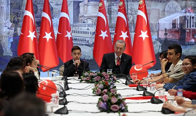 AKP Genel Başkanı ve Cumhurbaşkanı Recep Tayyip Erdoğan, 23 Nisan Ulusal Egemenlik ve Çocuk Bayramı dolayısıyla çocuklardan oluşan temsili kabine ile Dolmabahçe Ofisi’nde bir araya geldi. Erdoğan, “Bu muhalefet bizim dilimizden anlamıyor ya. Ne yapacağız onları” diye sorduğu çocuğun “Nasıl yani” yanıtı vermesi üzerine “Biz gazı bulduk diyoruz, onlar diyor ki nerede. Karadeniz’de, nerede Filyos’ta. Şimdi onlara sormak lazım, haritada Filyos’u gösterin ey muhalefet, bilmezler” dedi. Temsili kabine toplantısında bir çocuk, gübre ve mazot konusunda çiftçilerin desteklenmesini isterken; temsili Adalet Bakanı da “Adaleti daha fazla çoğaltırdım” diye konuştu.Cumhurbaşkanı Recep Tayyip Erdoğan, 23 Nisan Ulusal Egemenlik ve Çocuk Bayramı nedeniyle Milli Eğitim Bakanı Mahmut Özer ve depremzede çocuklardan oluşan temsili kabineyle Dolmabahçe Ofisi’nde bir araya geldi.Depremzedelerin normal hayatlarına geri döndürüleceğini belirten Erdoğan, "Dün Kahramanmaraş'taydım, bunun ötesinde Nurdağı'ndaydım. Orada köy evlerinin teslimatını yaptık. Kahramanmaraş'ta da yine aynı şekilde depremzedelerimizle bir araya geldik. Hayatını kaybeden insanlarımızı tekrar geri getiremeyiz ama geride bıraktıkları emanetlerine sahip çıkacağız" dedi.AKP Genel Başkanı ve Cumhurbaşkanı Recep Tayyip Erdoğan, Dolmabahçe Ofis'inde Milli Eğitim Bakanı Mahmut Özer ve çocuklardan oluşan Kabineyi kabul etti. “Geleceğimizi emanet ettiğimiz siz çocuklarımızı hayalleriyle buluşturmak için 21 yıldır gece gündüz çalıştık” diye sözlerine başlayan Erdoğan şunları söyledi:“HAYATIN AKIŞI İÇİNDE BAŞARILAR VE KAZANIMLAR KADAR AFETLER VE NE YAZIK Kİ KAYIPLAR DA YAŞANABİLİYOR: Şimdi ülkemizi getirdiğimiz seviyeyi Türkiye yüzyılıyla taçlandırmak istiyoruz. Bunun için yoğun bir hazırlık ve gayret içindeyiz. Biraz önce beraberce boğazdan uğurladığımız Anadolu gemimiz gibi nice projeyi ülkemize kazandırmak bizi çok sevindirdi. Elbette hayatın akışı içinde başarılar ve kazanımlar kadar afetler ve ne yazık ki kayıplar da yaşanabiliyor. Geçtiğimiz şubat ayında yaşadığımız deprem felaketlerinde işte böyle bir üzüntü yaşadık. Hayatını kaybeden 50 binin üzerindeki vatandaşımız geride sevdiklerini bıraktı. Sizlerin de içinde bu depremlerde yakınlarını tanıdıklarını kaybedenler var. Ebedi aleme göç eden bu kardeşlerimizin hepsine Allah'tan rahmet diliyorum.GERİDE BIRAKTIKLARI EMANETLERİNE SAHİP ÇIKACAĞIZ: Devletimiz ve milletimiz depremin yaralarını sarmak, geride kalanlara sahip çıkmak için tüm imkanlarını seferber etti. İnşallah bir yıl içinde şehirlerimizi ayağa kaldırarak depremzedelerimizi normal hayatlarına geri döndüreceğiz. Nitekim dün Kahramanmaraş'taydım onun ötesinde Nurdağı'ndaydım. Nurdağı'nda köy evlerinin teslimatını yaptık. Kahramanmaraş'ta da yine aynı şekilde depremzedelerimizle bir araya geldik. Hayatını kaybeden insanları tekrar geri getiremeyiz. Ama geride bıraktıkları emanetlerine sahip çıkacağız. Deprem şehitlerimize ve onların emanetlerine, vefamızı, Cumhuriyetimizin yeni asrını Türkiye Yüzyılı yaparak ödeyebileceğimize inanıyorum. Milletimiz nice badireyi, saldırıyı afeti özellikle birliğine, beraberliğine sarılarak geride bıraktı. Allah'ın izniyle 6 Şubat depremlerinin izlerini de aynı şekilde sileceğiz. Sizlerden milletimizin size olan güvenini bilimin ve değerlerimizin ışığında kendinizi en iyi şekilde yetiştirerek güçlendirmenizi istiyorum. 23 Nisan Milli Egemenlik ve Çocuk Bayramınızı bir kez daha tebrik ediyorum. Sizlerin nezdinde milletimizin tüm çocuklarını gözlerinden öpüyorum”Erdoğan, konuşmasının ardından temsili kabine üyelerine söz verdi. Temsili Cumhurbaşkanı olan çocuk, şunları söyledi:“Eğer ben Cumhurbaşkanınızın yerinde olsaydım yani Cumhurbaşkanımız gibi bir sürü yapılar yapardım. O milletimize çok sahip çıktı bizi hiçbir zaman alçakta bırakmadı. Ondan teşekkür ediyorum böyle yaptığı için. Öbür fikrim özellikle savunma sanayileri ve teknolojileri ileriye götürmeyi düşünürdüm. Öbürü ise ben depremi yaşadığım için insan evlerine çok hızlı yaptırırdım. Başka fikirlerim de var. Bunları da size söyleyeceğim. Uzay çalışmalarına ağırlık vereceğim. Otonom araçların çeşidini ve sayısını arttıracağım. Akıllı yolların sayısını çoğaltıp trafik kazalarının azalmasını sağlayacağım. Tıp alanında çalışmaları ağırlık verip kanserin ilaçlarını bulunmasını sağlayacağım. Şimdi sözü bakanlarıma bırakıyorum.”Milli Eğitim Bakanı olan çocuk, “Milli Eğitim Başkanımız” diye söze başlayınca Erdoğan, “Milli Eğitim Bakanı” olarak düzeltti. Çocuğun kırtasiye yardımıyla ilgili konuşurken şaşırması üzerine Erdoğan, “Kitap verdiler” dedi. Çocuk, Öğretmenlik Meslek Kanunu’nu için teşekkür etti. Erdoğan, “Laptop da verecek misiniz” demesi üzerine temsili Milli Eğitim Bakanı “Veririz, zaten vermişlerdi” diye konuştu. Erdoğan da “Size zaten şimdi çıkarken de vereceğiz. Milli Eğitim Bakanımız hepinize laptop verecek” dedi.Temsili Gençlik ve Spor Bakanı olan çocuk, Gaziantep Şehit Kamil ilçesinde voleybol sahası olmadığını söyledi. Erdoğan, Milli Eğitim Bakanı Mahmut Özer’e dönerek “Şehit Kamil’de hiç voleybol sahası yokmuş, nasıl olur” dedi. Özer de bütün okulların bahçelerinde voleybol sahası yaptıklarını belirterek, “O okullara da bakalım, emredersiniz” diye konuştu.“HOCAM BEN DAHA TAMAMLAYAMADIM”Erdoğan’ın söz verdiği temsili Sanayi ve Teknoloji Bakanı olan çocuk, “Hocam, ben daha tamamlayamadım, yarım kaldı” dedi. Bunun üzerine Erdoğan, “Sen şimdi bir defa çok 
