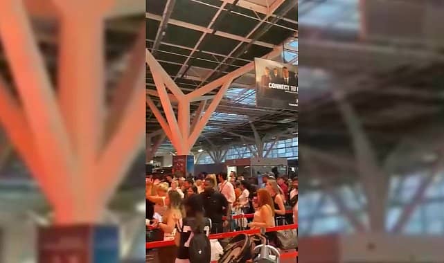 MEHMET ÖZGÜR BOZKURTCumhurbaşkanı Recep Tayyip Erdoğan’ın açılışını yaptığı KKTC Ercan Havalimanı yeni terminal binasının elektronik sistemleri çöktü. Yolcular, yaşadıkları sorunu alkışlarla protesto etti.Cumhurbaşkanı Recep Tayyip Erdoğan’ın dün açılışını yaptığı KKTC Ercan Havalimanı yeni terminal binasının elektronik sistemleri, bugün çöktü. Açılışının ikinci gününde bavul taşıma bantları durunca yolcular uçaklarına yetişemedi. Klimaların çalışmadığı yeni terminal binasında sık sık elektrikler kesildi. Kimlik kontrolü yapan uçuş görevlileri ise yolcuların tepkileri ile karşılaştı.Uzun kuyrukların oluştuğu kontuarların önünde ise yolcular yaşanan sorunu alkışlarla protesto etti.