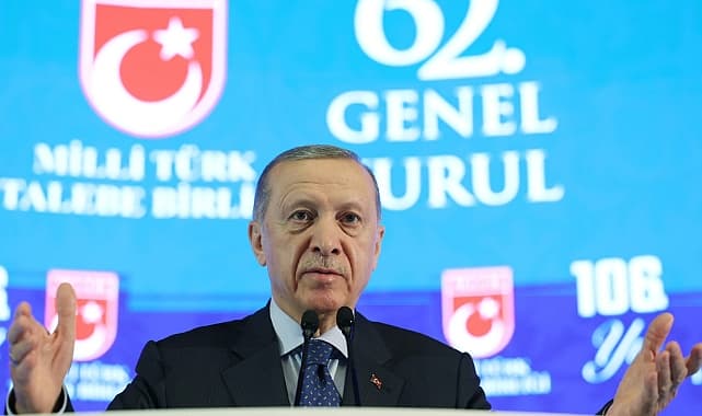 Cumhurbaşkanı Recep Tayyip Erdoğan, Milli Türk Talebe Birliği'nin 62. Genel Kurulu'nda "İsrail bir terör devletidir. O devletin başında olan kişi de İsrail halkını da isyan ettirir hale gelmiştir. O yüzden de eceli yakındır. Bunların geren cezayı alması şarttır. Yoksa insanlar kendisini güvende hissedemez. Her bozuk düzen gibi bu düzenin de değişmesi kaçınılmazdır. Biz bu değişim talebini her fırsatta dile getiriyoruz. Gazze'ye gönderdiğimiz yardımların ardından kanser hastalarını tedavi ediyoruz. Tedavi edilecekleri alma gayreti içindeyiz. Gazze'yi hayatta tutmaya devam edeceğiz. Mısır ile görüşmelerimiz sürüyor. Gazze'de dökülen her gözyaşı ve kan boşa gitmeyecektir" açıklamasını yaptı.Cumhurbaşkanı Recep Tayyip Erdoğan, Milli Türk Talebe Birliği'nin İstanbul'daki Genel Merkezi'nde düzenlenen 62. Genel Kurul'a katıldı. Genel Kurul'da konuşan Erdoğan, şunları söyledi:"Bütün batı dünyası, Haçlı emperyalist yapı bir arada. Yatıp kalkıp şunu söylüyorlar: Hamas da Hamas. Kendilerine şunu söyledim. Şu ana kadar 13 bin çocuk, yaşlı, genç öldürüldü. İsrail'in elinde de şu an 10 bine yakın rehine var. Almanya olarak siz onları verme adımı atın. Biz de Hamas'ın elindekileri alma gayreti içine girelim. Ne olursa olsun dik duracağız."ÜLKEMİZ ATEŞ ÇEMBERİYLE ÇEVRİLİ"Ülkemiz adeta bir ateş çemberiyle çevrilidir. Türkiye askeri ve siyasi olarak büyümektedir. Ancak unutmayın Haçlı-Hilal olayı bitmiş değil. Lokomotif olan Türk ve İslam dünyasının önderi Türkiye'nin önüne geçmelerine fırsat vermeyeceğiz. Çevremize, gönül coğrafyamızın ufkuyla bakıp değerlendirmemiz gerekiyor. Suriye, Irak, Kıbrıs, Kafkaslardaki bütün meseleler böyledir. Farklı ülkelere dağılmış olarak yaşayan 7 milyon vatandaşımızla ilgili her mesele böyledir.Suriye'den, Karabağ'dan, Bosna'dan bize ne diyen her kim ise Türkiye'nin büyük yürüyüşüne çelme takıyordur. Ülkemizde de epeyce okumuş cahilin bulunduğu bir gerçektir. Türkiye'yi rotasından saptırmak isteyen her tuzak, senaryo, oyun milletimizin iman duvarına çarpmış ve akamete uğramıştır. Maruz kaldığımız her saldırının mutlaka bir maliyeti olmuştur. Biz İstanbul'da 1994 Mart'ından itibaren işte bunun mücadelesini verdik."AYNI İTTİFAKLAR İÇİNDE YER ALDIĞIMIZ ÜLKELERİN GİZLİ BLOKAJLARIYLA KARŞI KARŞIYA KALDIK"Güya aynı ittifaklar içinde yer aldığımız ülkelerin gizli blokajlarıyla karşı karşıya kaldık. Bir de bunların içerdeki uzantıları var. Hangi projeyi hayata geçirdiysek dış ve iç sabotajcıları rağmen bu adımları attık. Gençlerimizin ülkemizi hak ettiği seviyeye çıkaracağından şüphe duymuyorum. Türkiye mutlaka güçlü olmak zorunda. Suriye darmadağın, Irak kırılgan, Libya bütünlüğünü sağlayamadı. İsrail bölgedeki her devleti tahrik eder hale geldi. İslam ülkeleri, Kudüs konusunda bile güçlü bir duruş sergileyemiyor. Gazze meselesinde, Karabağ'da sağlanan güç birliğini üzülerek ifade ediyorum, sağlayamadık. Onlar Gazze'de insanları öldürüyorsa bu onların gücü değil, İslam ülkelerinin dağınıklığı."BU PARLAMENTONUN ÇATISI ALTINDA NETANYAHU GİBİ KONUŞANLAR OLMAMALI"Ne yazık ki parlamentomuzda bir siyasi partinin genel başkanı aynen Netanyahu gibi konuşuyor. Buna haddini milletimiz bildirecek. Bu parlamentonun çatısı altında Netanyahu gibi konuşanlar olmamalı. İsrail bir terör devletidir. O devletin başında olan kişi de İsrail halkını da isyan ettirir hale gelmiştir. O yüzden de eceli yakındır. Bunların geren cezayı alması şarttır. Yoksa insanlar kendisini güvende hissedemez. Her bozuk düzen gibi bu düzenin de değişmesi kaçınılmazdır. Biz bu değişim talebini her fırsatta dile getiriyoruz.Gazze'ye gönderdiğimiz yardımların ardından kanser hastalarını tedavi ediyoruz. Tedavi edilecekleri alma gayreti içindeyiz. Gazze'yi hayatta tutmaya devam edeceğiz. Mısır ile görüşmelerimiz sürüyor. Gazze'de dökülen her gözyaşı ve kan boşa gitmeyecektir. MTTB'nin bunun bayraktarlığını yapacağına inanıyorum."
